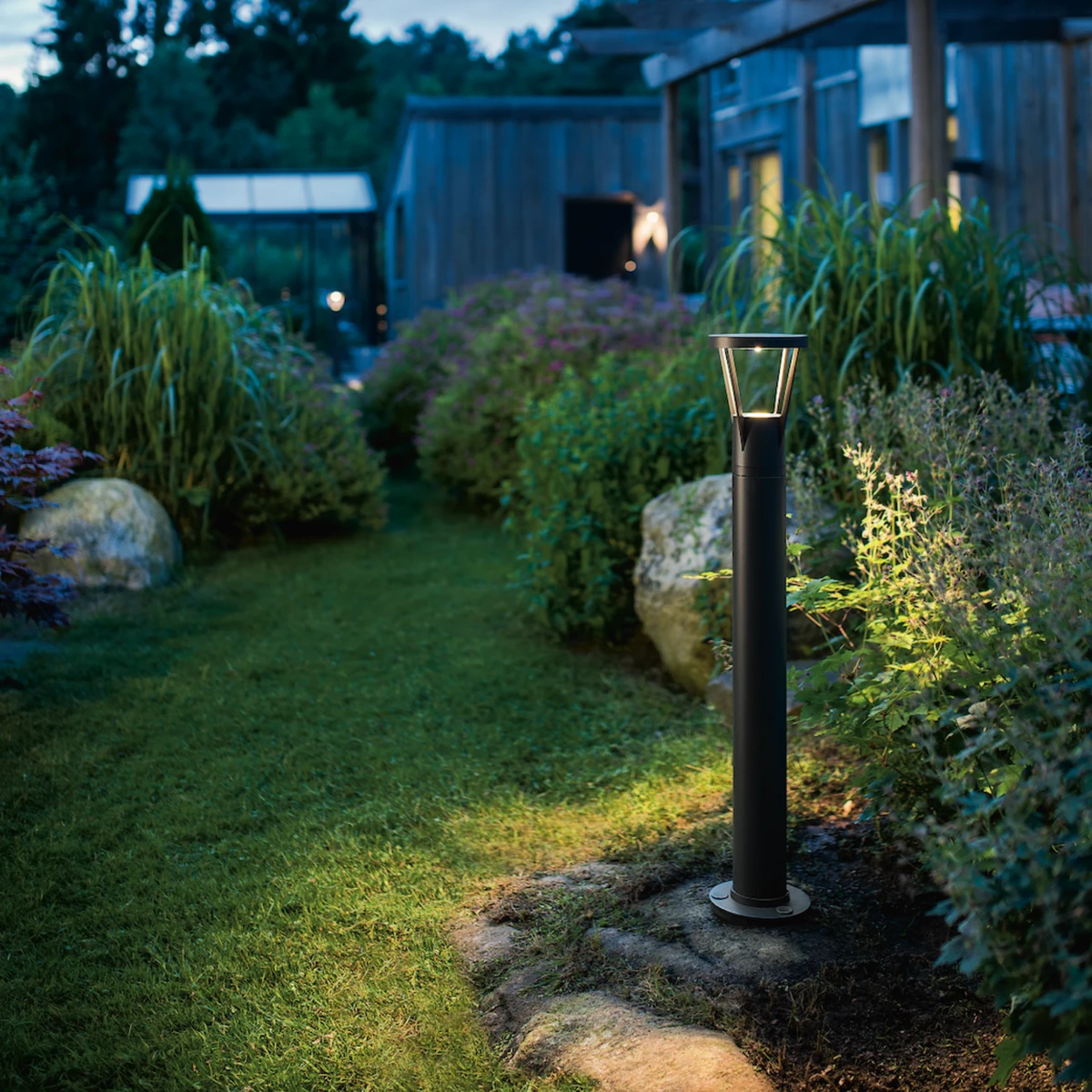 LED-pullert i moderne design til hage og gangveier. Armaturen er utført i trykkstøpt aluminium pulverlakkert i grå eller sort, med avskjerming i herdet glass. Finnes som høy og lav pullert, samt veggarmatur. Montert med utskiftbar GU10 LED som gir et mykt lys. Dimbar med faseavsnittdimmer. Vi anbefaler LEDDim 400 og LEDDim Smart. Låsbar tilgang til lyskilden med penolskrue. 10 års korrosjonsgaranti, beskyttelsesklasse IP54, slagfasthet IK08
