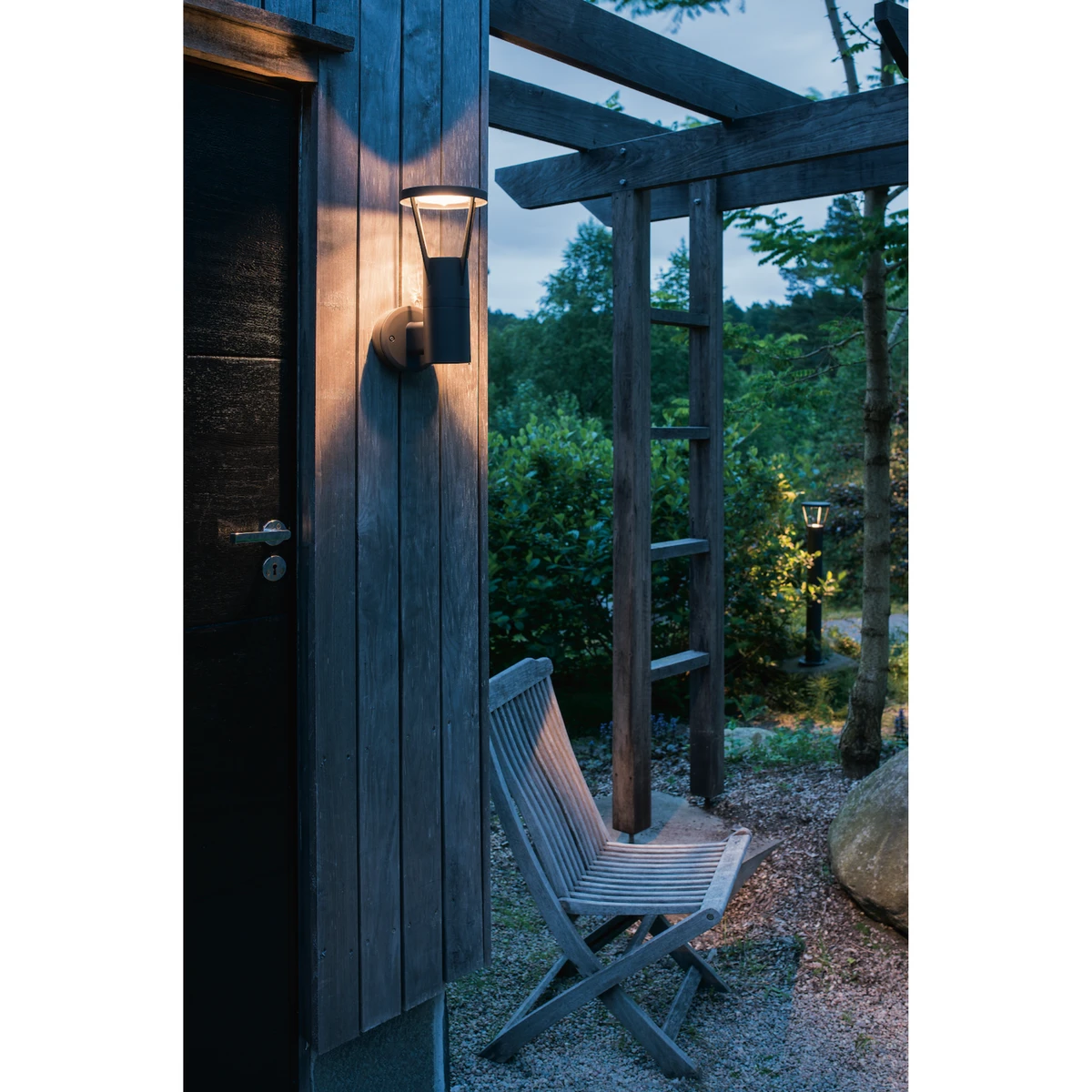Vegglampe i moderne design og kan dimmes med ekstern dimmer.