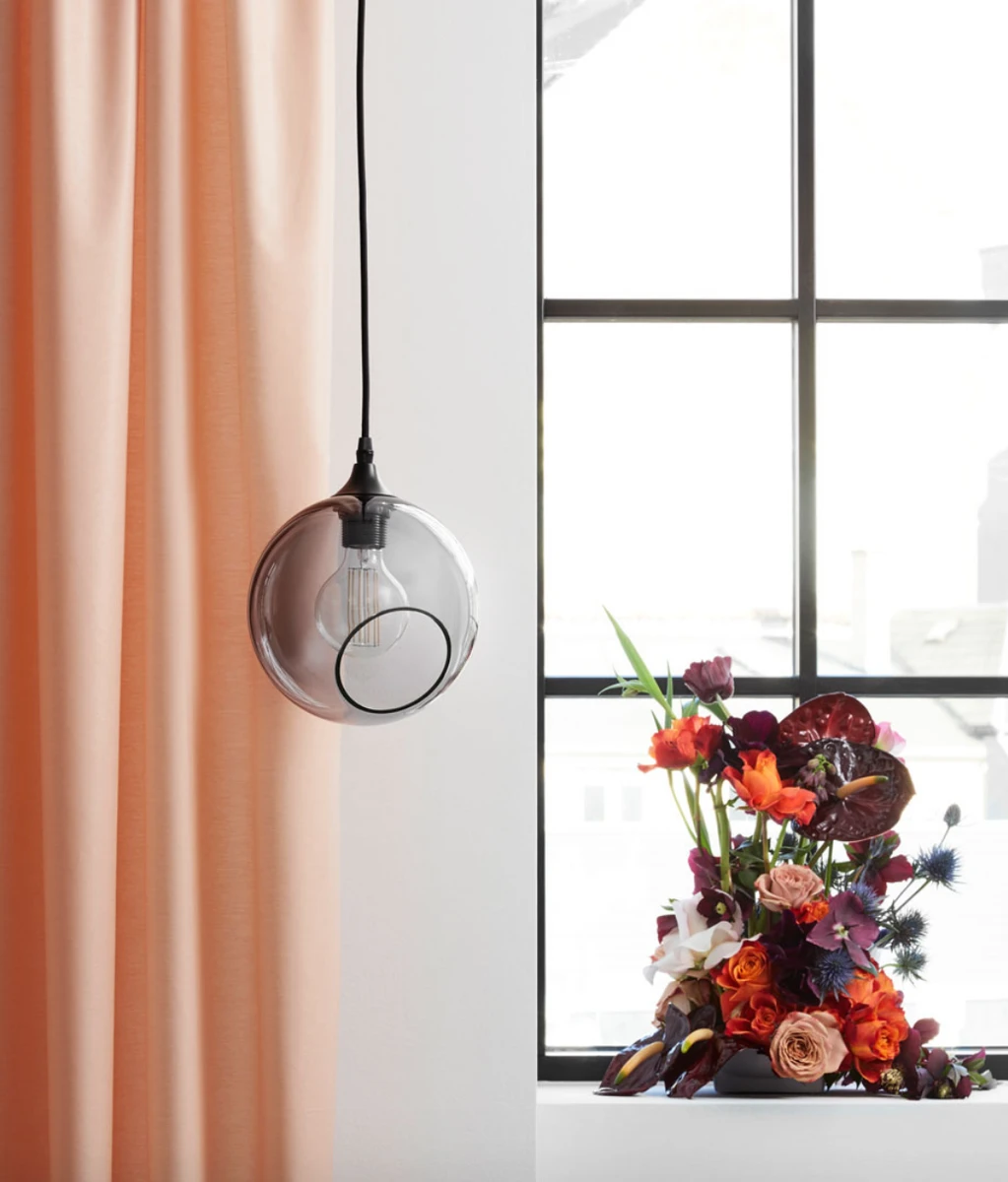 Ballroom taklampe fra Design By Us er en enkel og vakker takpendel med flotte detaljer. Den klassiske formen kombinert med det sorte opphenget gjør denne lampen tidløs. Glasskuppelen er munnblåst og håndmalt. Kanten på det fasetterte hullet er malt i sølv som en vakker detalj.