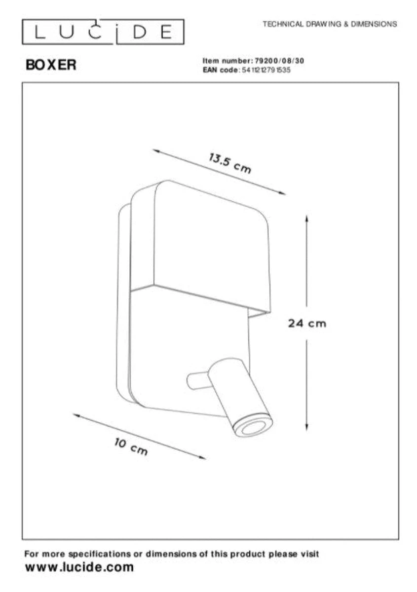 Vegglampen Boxer har et moderne design. Du kan for eksempel lade smarttelefonen din via USB som er på undersiden av lampen. Styr lampen via 2 bryterne for leselys og LED-stip. Du kan bruke en om gangen, eller slå begge lysene på begge samtidig. Den funksjonelle spotten er justerbar og vippbar. På den måten har du alltid lyset på rett sted. Det moderne designet er laget i høykvalitets stål.