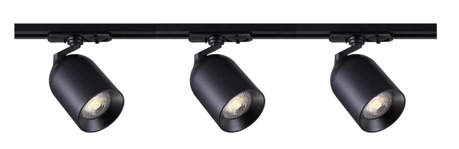 Komplett spotskinne 1 meter med 3 spotter, endestykke og tilkobling.