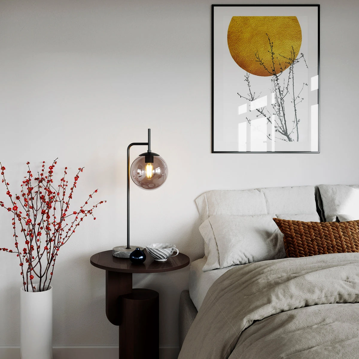Karismatisk design. Punto bordlampe i svart matt metall og hvite matte glasskupler gir et moderne og stilig inntrykk. Her møtes runde former og rette linjer i en sjarmerende konstellasjon. Til tross for at Punto bordlampe er relativt enkel og strippet ned i sin grunnleggende design, bidrar de vertikale glasskuplene til å gi lampen et særegent utseende som inngir livlighet og glede. Plasser Punto bordlampe i det store vinduet, på sidebordet ved sofaen, på skjenken i gangen eller kanskje på kommoden på soverommet? Uansett hvor du velger å plassere Punto bordlampe, vil lampen lyse opp omgivelsene og gjøre deg glad i lang tid fremover. Med sin industrielle følelse passer Punto bordlampe like godt i det moderne hjemmet som i det hyggelige kontorlandskapet.