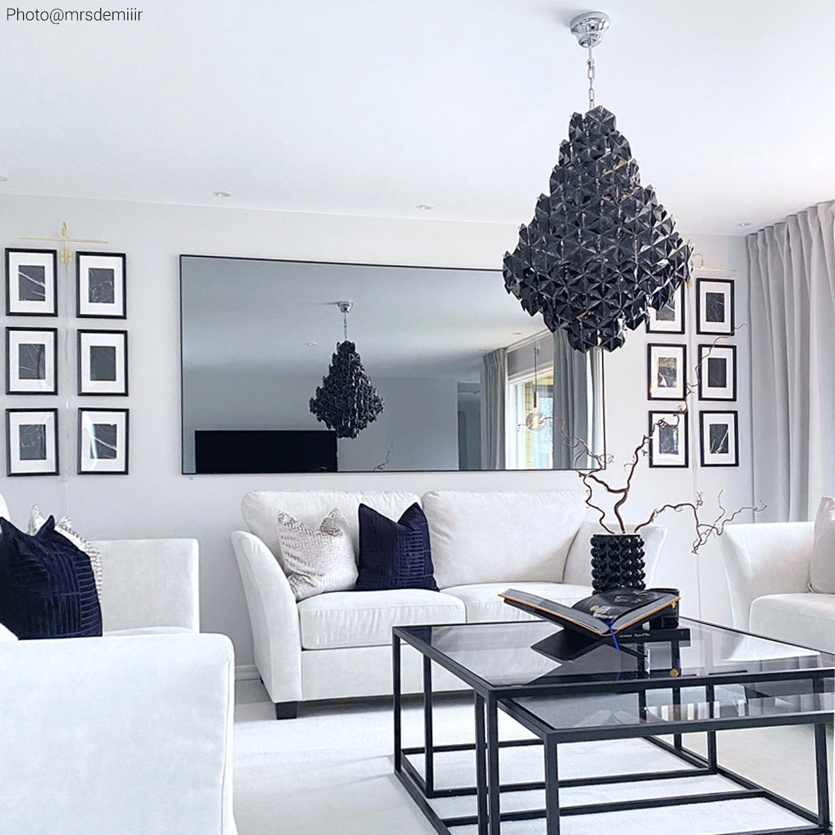 Monarque grande er en helt fantastisk taklampe i klar akryl med detaljer i sort kromfarge. En stilig lampe som setter preg der den plasseres.