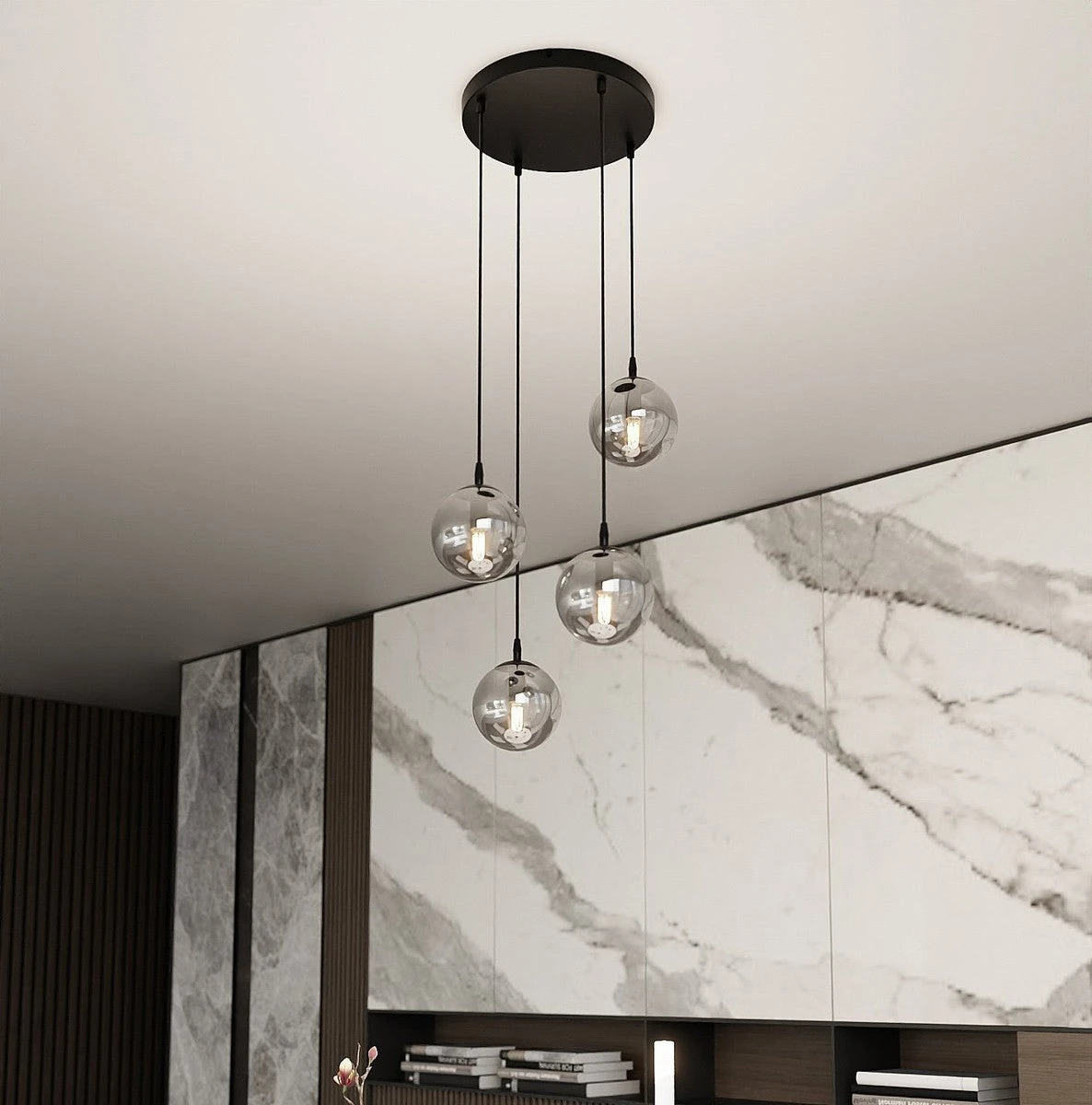 Cosmo er en nydelig pendelserie, som blant annet finnes som 1, 2, 3 eller 4 lys. Modellen er i fargen sort og kan velge mellom klart-, røykfarget- eller amberfarget glass.