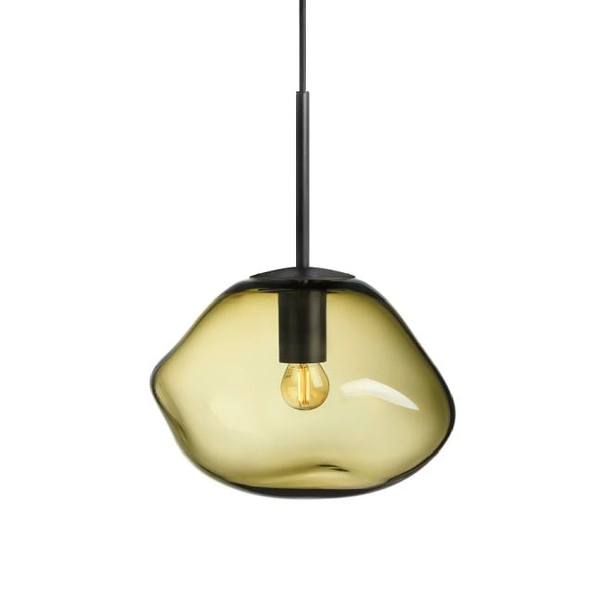 Få en følelse av ro og balanse med oliven glasspendellampe.