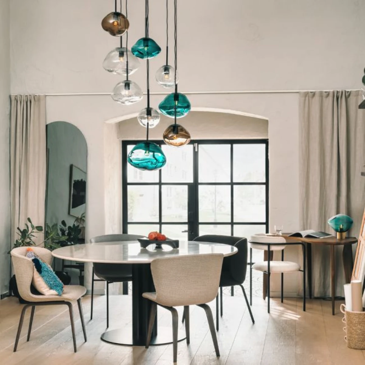 Skap energi og friskhet med blågrønne glasspendellampe