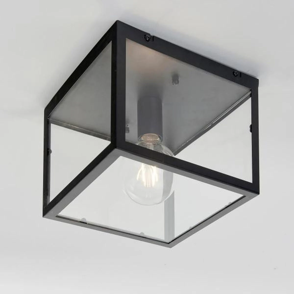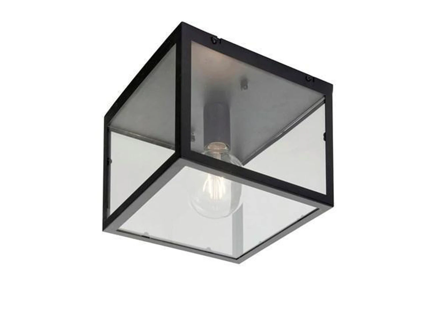 Dovre taklampe hører til resten av Dovre serien som kommer med bord, vegg og taklamper. En trendy serie med sitt enkle design. Lampen har en ramme av metall med sort fargeutførelse og har skjermer av glass.
