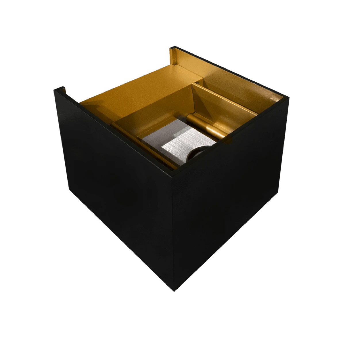 Duhr Square er en veggmontert armatur med opp/ned lys i moderne design. Lysfordelingen kan justeres ved å endre posisjon på de innvendige klaffene. Dette gjør den meget anvendelig for de fleste rom.