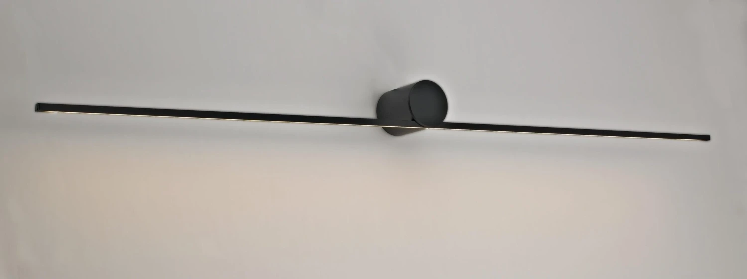 Elegant og minimalistisk lampe, som kan monteres på vegg. Lampen gir et indirekte lys nedover, og kan monteres vannrett og loddrett for å skape ulike designeffekter.