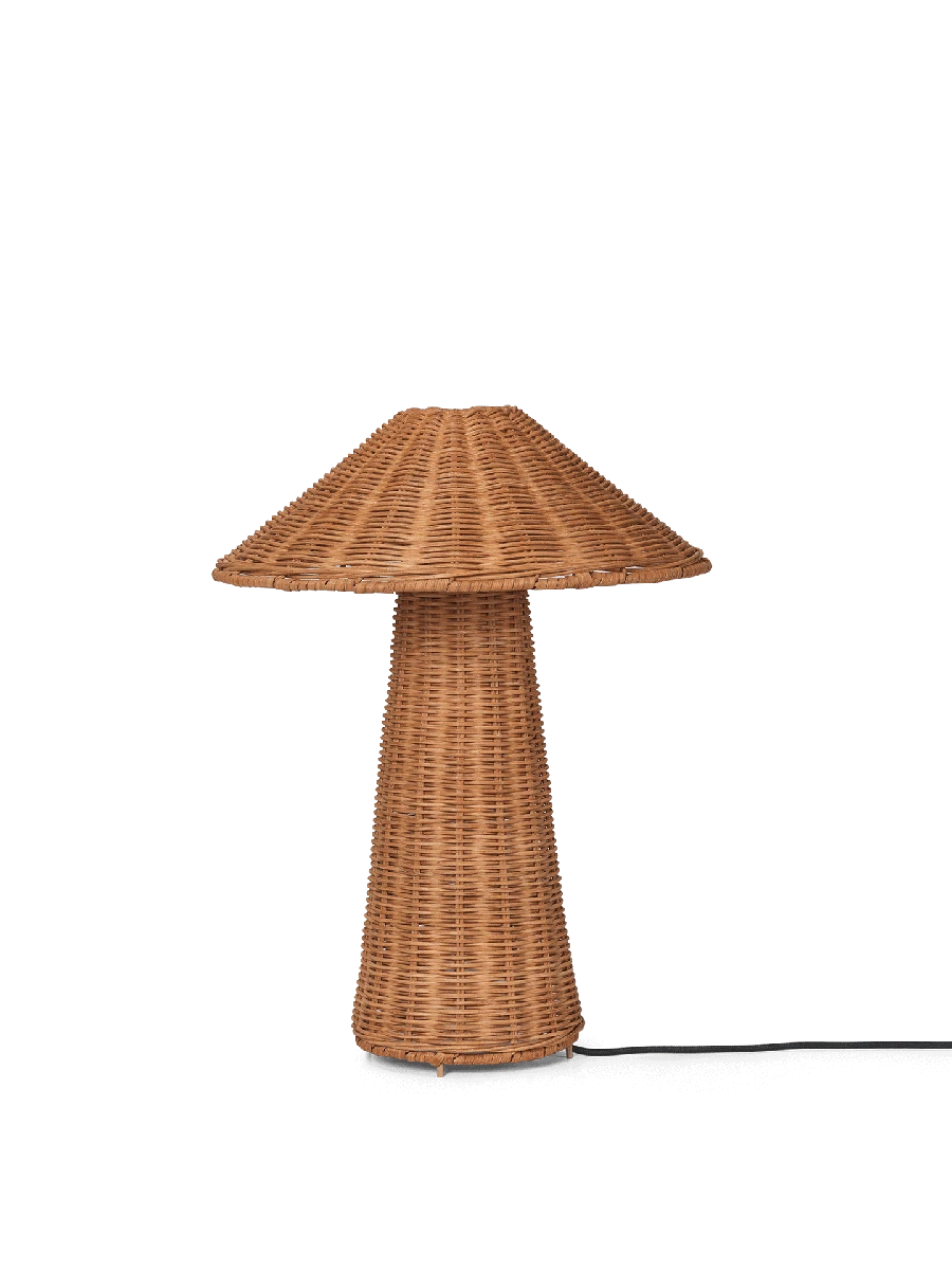Dou bordlampe fra Ferm Living er håndflettet av naturlig rotting. Det er en herlig kontrast mellom geometriske former og de organiske strukturelle kvalitetene til materialet. Denne lampen vil gi et behagelig lys til rommet, en ekte stemningsskaper.