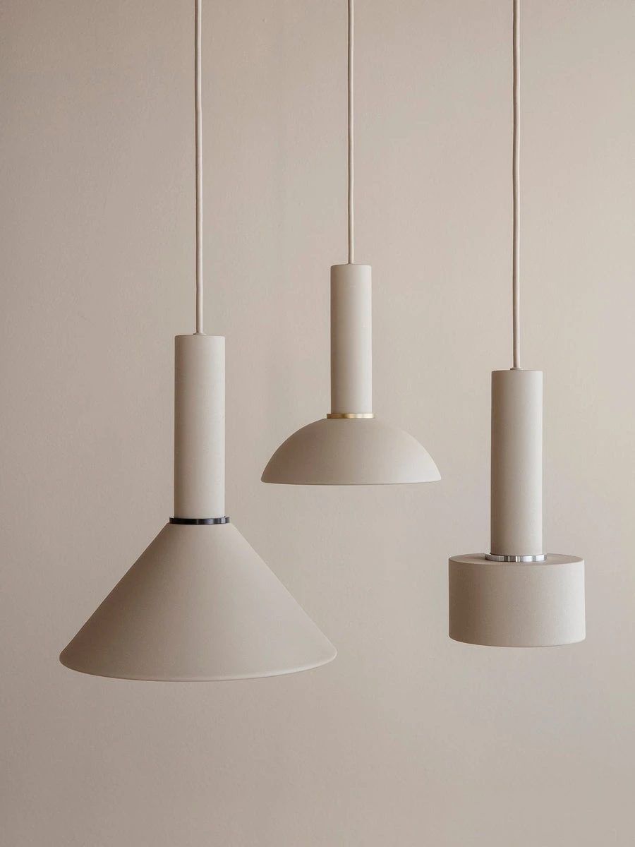 Med Collect serien fra Ferm Living kan du sette sammen din helt egen lampe! Du kan fritt velge mellom sokkel og lampeskjerm både i størrelse, farge og materiale. Alle delene kan enkelt settes sammen. Pulverlakkert metall og hvit innside gir deg en lampe som gir godt med lys ned i bordflaten. Egner seg fint over kjøkkenøya eller spisebordet.