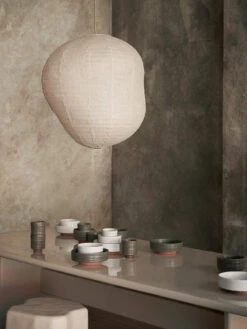 Kurbis taklampe presenterer en sjarmerende vri på den klassiske rispapirlampen. Kurbis har en organisk og asymmetrisk form som gir den et særegent og unikt utseende. Lampen vil gi et mykt og behagelig lys til ethvert rom.