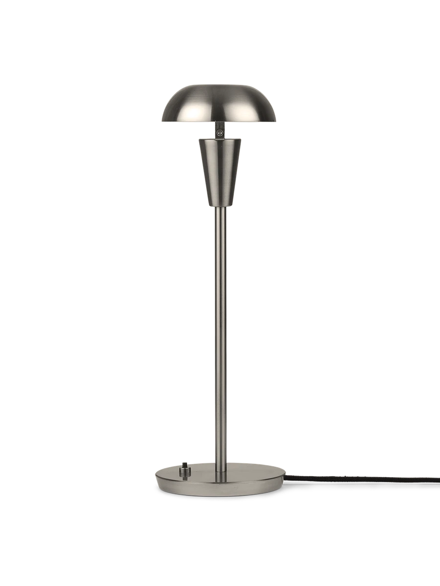 Tiny Lamp fungerer som en funksjonell og dekorativ bordlampe til alle rom. På grunn av den lille, slanke fasongen kan lampen enkelt plasseres i vinduskarmen eller på skrivebordet for ekstra lys. Lampen er inspirert av industriell Art Deco og utstråler enkelhet i både uttrykk og metallkonstruksjon. Det nyttige vippehodet gjør det mulig for deg å vippe skjermen for å skape et annet utseende på lampen, så vel som den passer til atmosfæren i rommet. Den lille skyggen i kombinasjon med den slanke basen, som spiller på proporsjoner, gir den lille bordlampen sin karismatiske designtrekk og personlighet.
