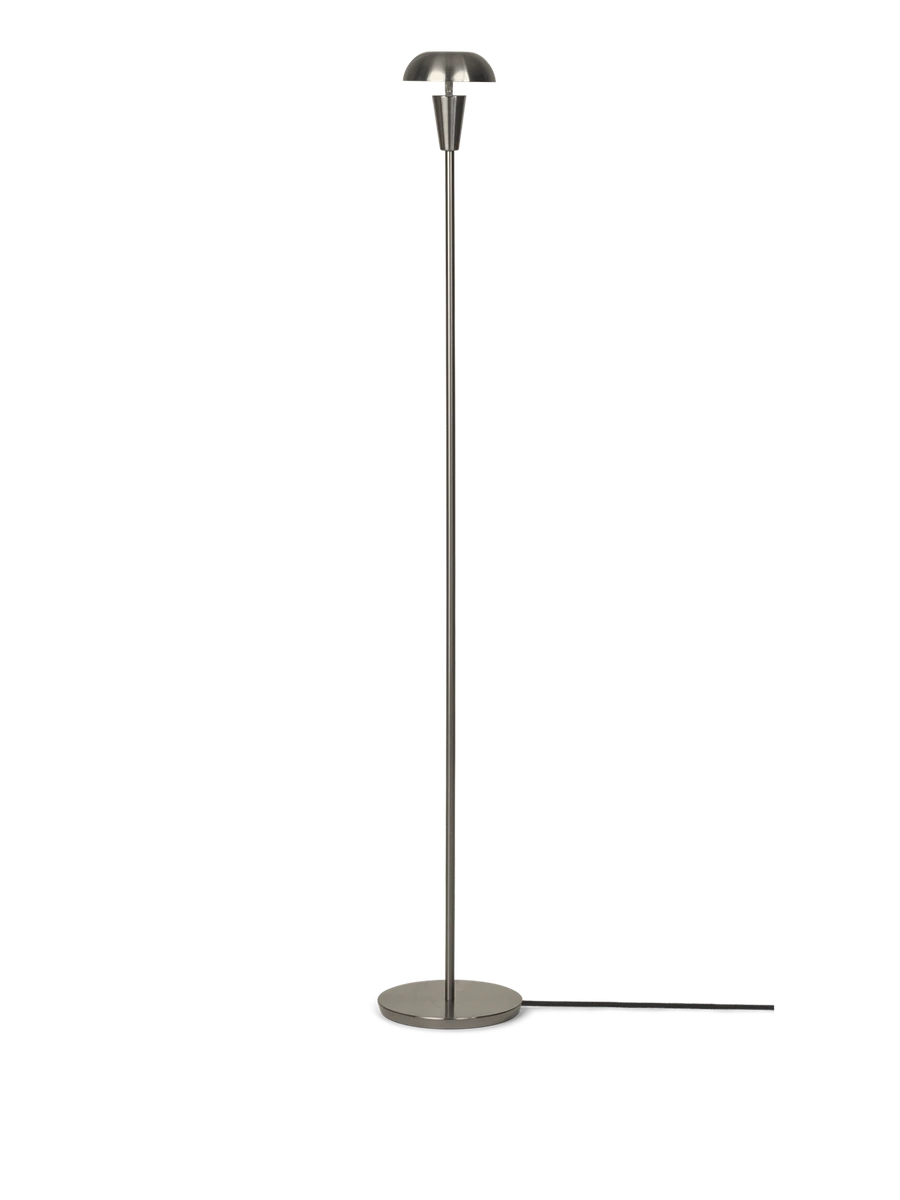Tiny Floor Lamp fungerer som en funksjonell og dekorativ lyskilde. På grunn av sitt smale, høye og slanke utseende, passer denne gulvlampen i de fleste hjørner, eller bak sofaen der du trenger litt ekstra lys for å skape en koselig atmosfære. Tiny Floor Lamp er inspirert av industriell Art Deco, og utstråler enkelhet i både uttrykk og metallkonstruksjon. Det nyttige vippehodet gjør det mulig for deg å vippe skjermen for å skape et annet utseende på lampen, slik at den passer til atmosfæren i rommet. Den lille skyggen i kombinasjon med den høye, slanke basen, som spiller på proporsjoner, gir Tiny Floor Lamp sin karismatiske designegenskap og personlighet.