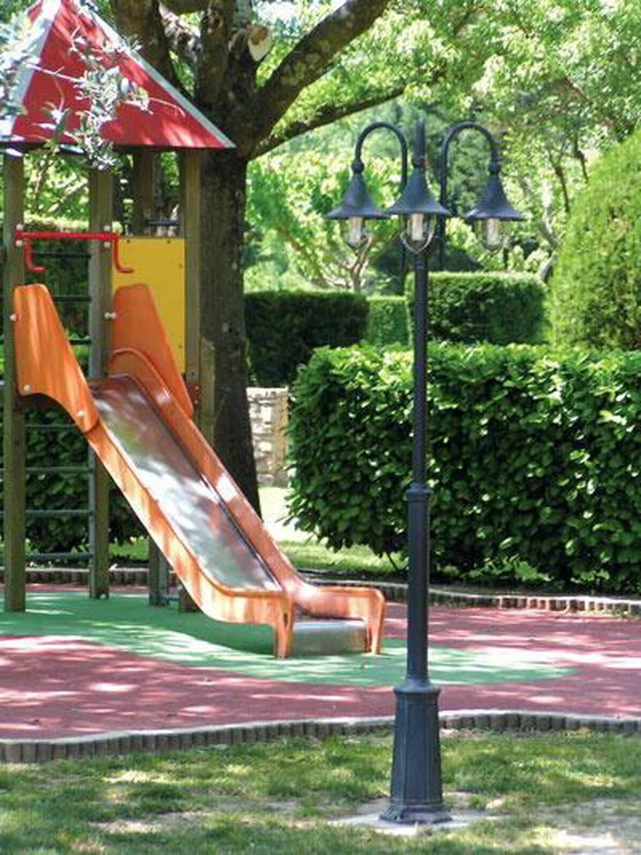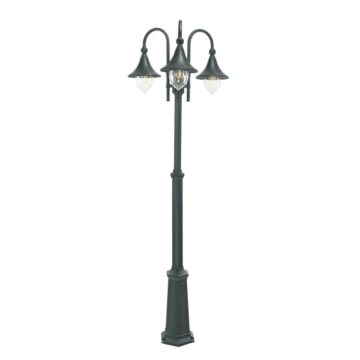 Stolpelampe i klassisk design. Høyden på stolpen kan enkelt justeres. Glasset er av slagfast klar (sotet) polykarbonat. Hvit kuppel kan bestilles.