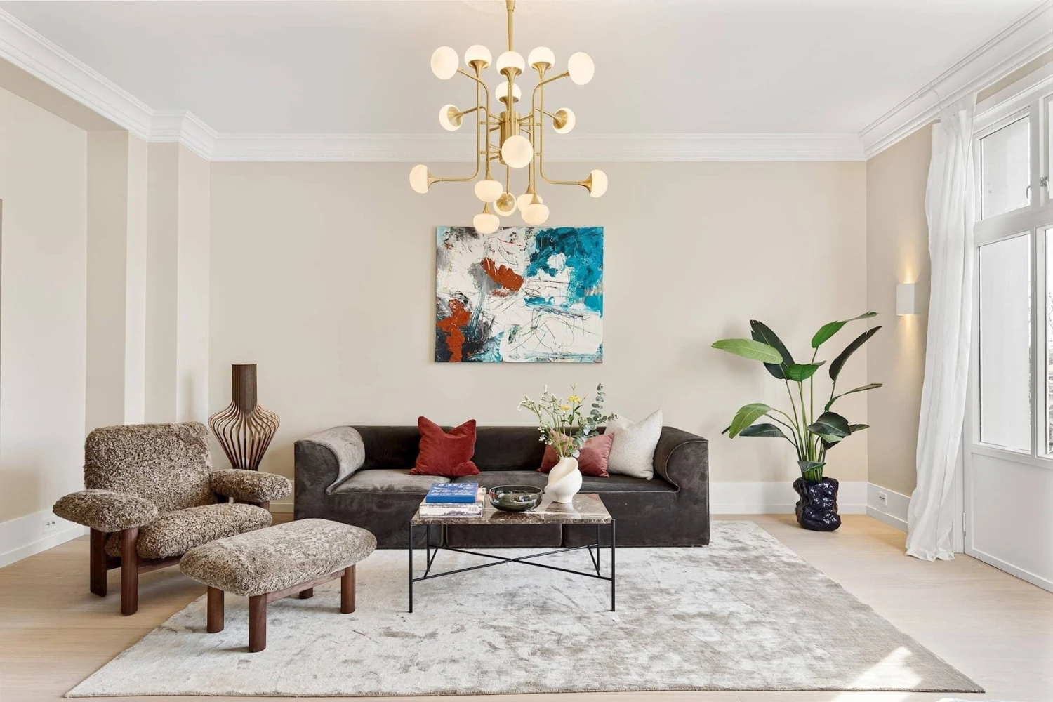 Fleming lysekrone fra Hudson Valley er en lampe med wow-faktor! Heng den over spisebordet, over salongbordet, på kjøkkenet, på soverommet eller midt i rommet om høyden tillater det. Lampen har en fin messingfinish, 8 kupler i opalhvitt glass og sørger for godt lys til rommet.