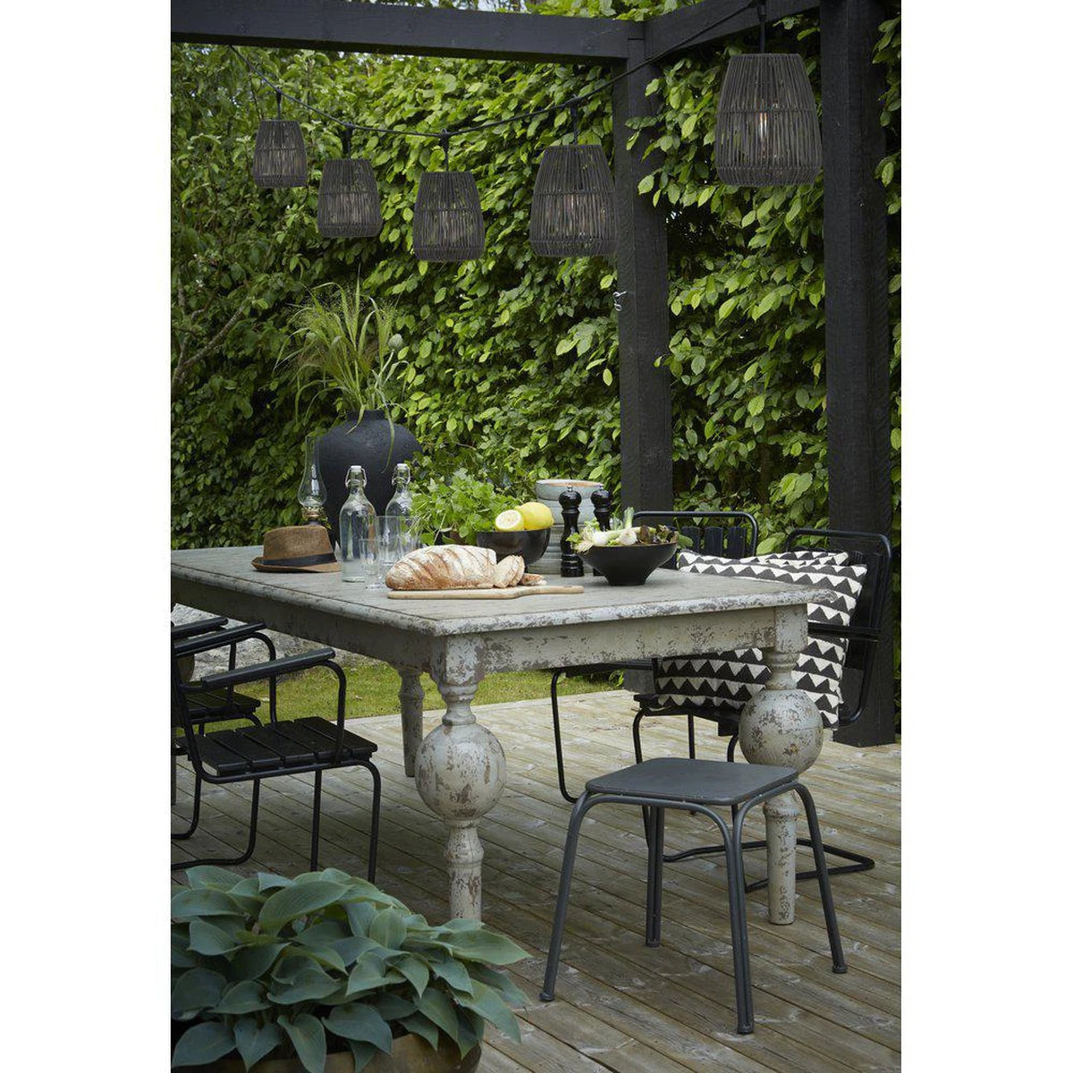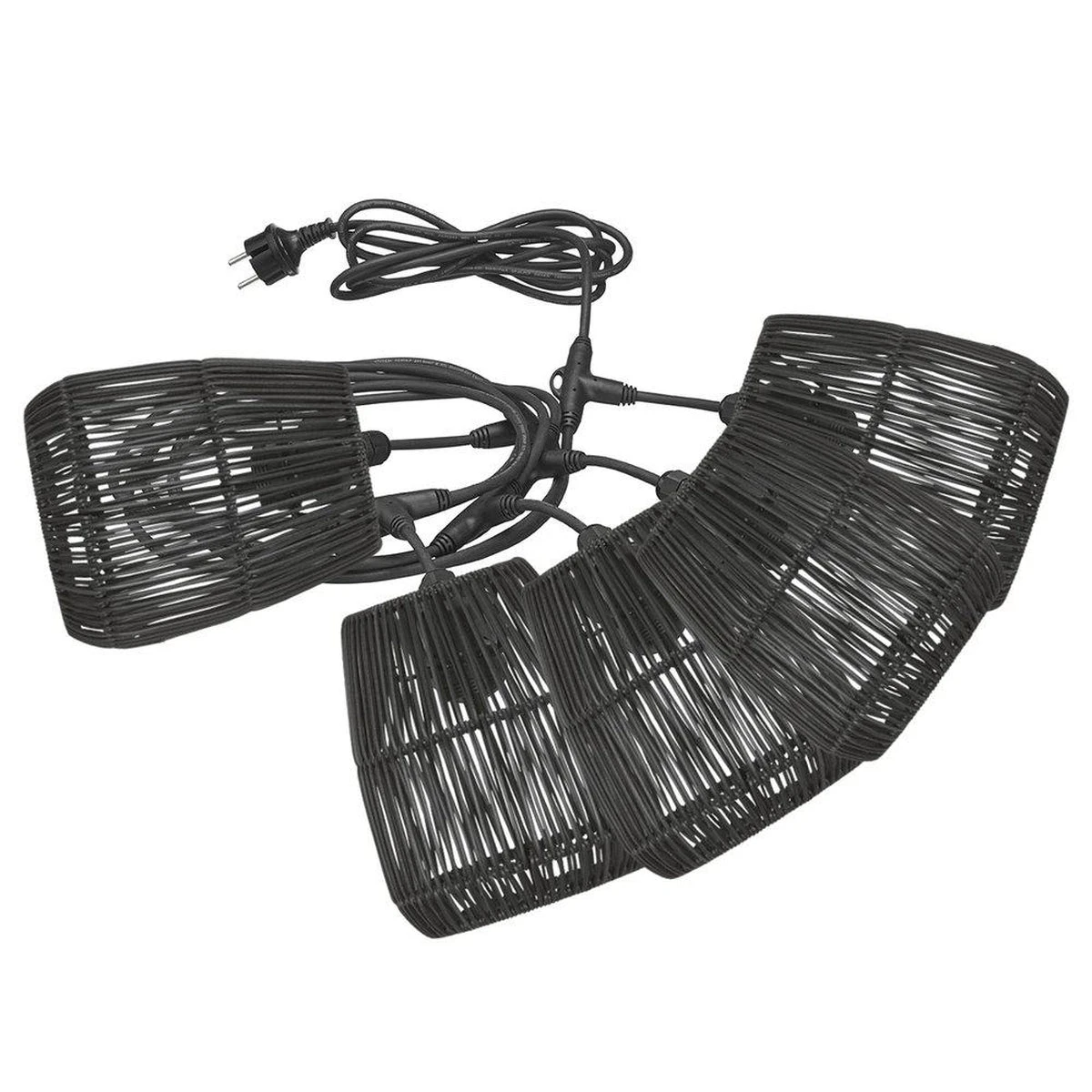 Flex Out Lysslynge til utendørsbruk med 5 stk Saigon lampeskjermer i sort kunstrotting. Skjermen er 18 cm bred og 20 cm høy.