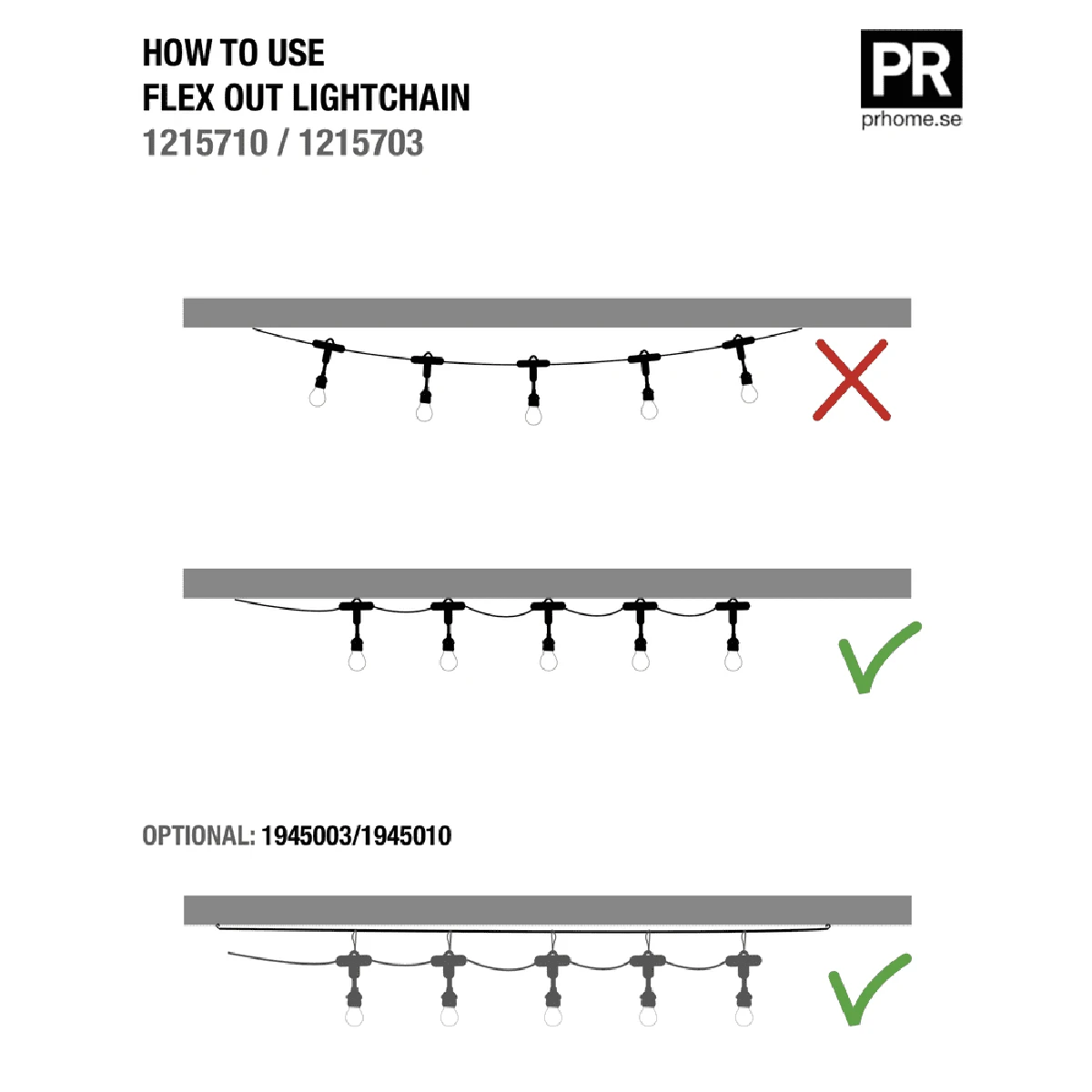 - Fra stikkontakt til første lyskilde: 2,5 m