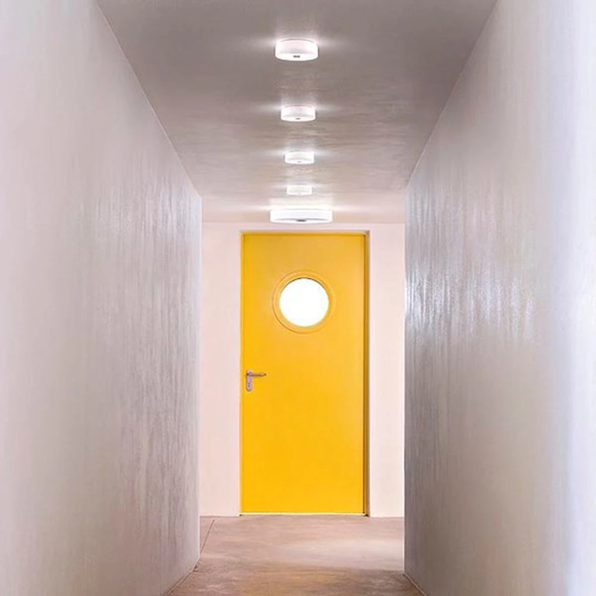 Button tak/vegglampe i glass fra italienske Flos. Denne stilrene lampen gir et diffust og behagelig lys og er fin å dimme. Den kan festes både i tak og på vegg, og den har IP40 slik at den også kan brukes på baderom. Finnes også i en større utgave.Glasset er munnblåst og det er detaljer i stål og blank krom. Designet av Piero Lissono i 2005