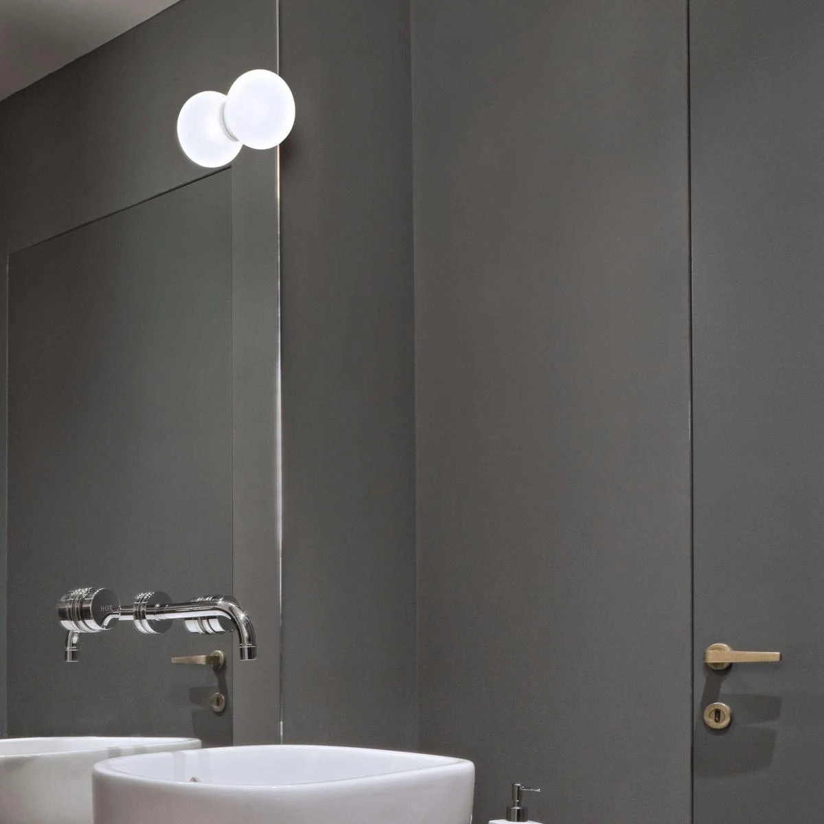 Mini Glo-Ball vegg/tak er en enkel, men genial lampe som gir generelt lys til rommet. Denne varianten er beregnet for fritthengende speil og leveres med hvit ringmutter for montering på baksiden av speilet. Hullet i speilet skal være Ø35mm, og tykkelsen på speilet kan være fra 3-6mm. Har du fastlimt speil, bruker du heller Mini Glo-Ball C/W vegg/tak i vanlig modell.