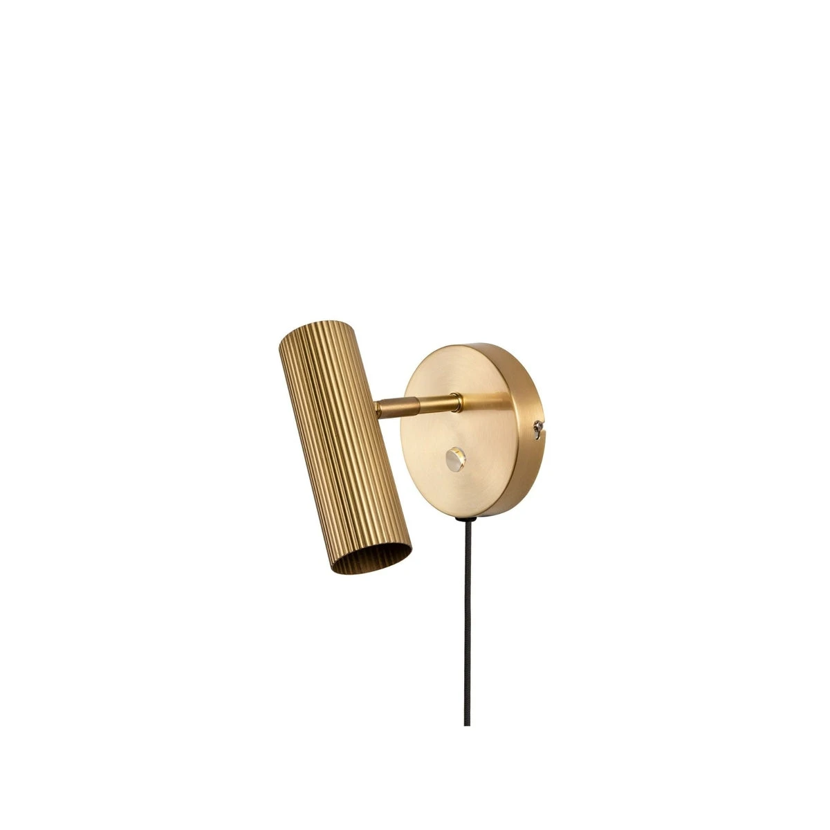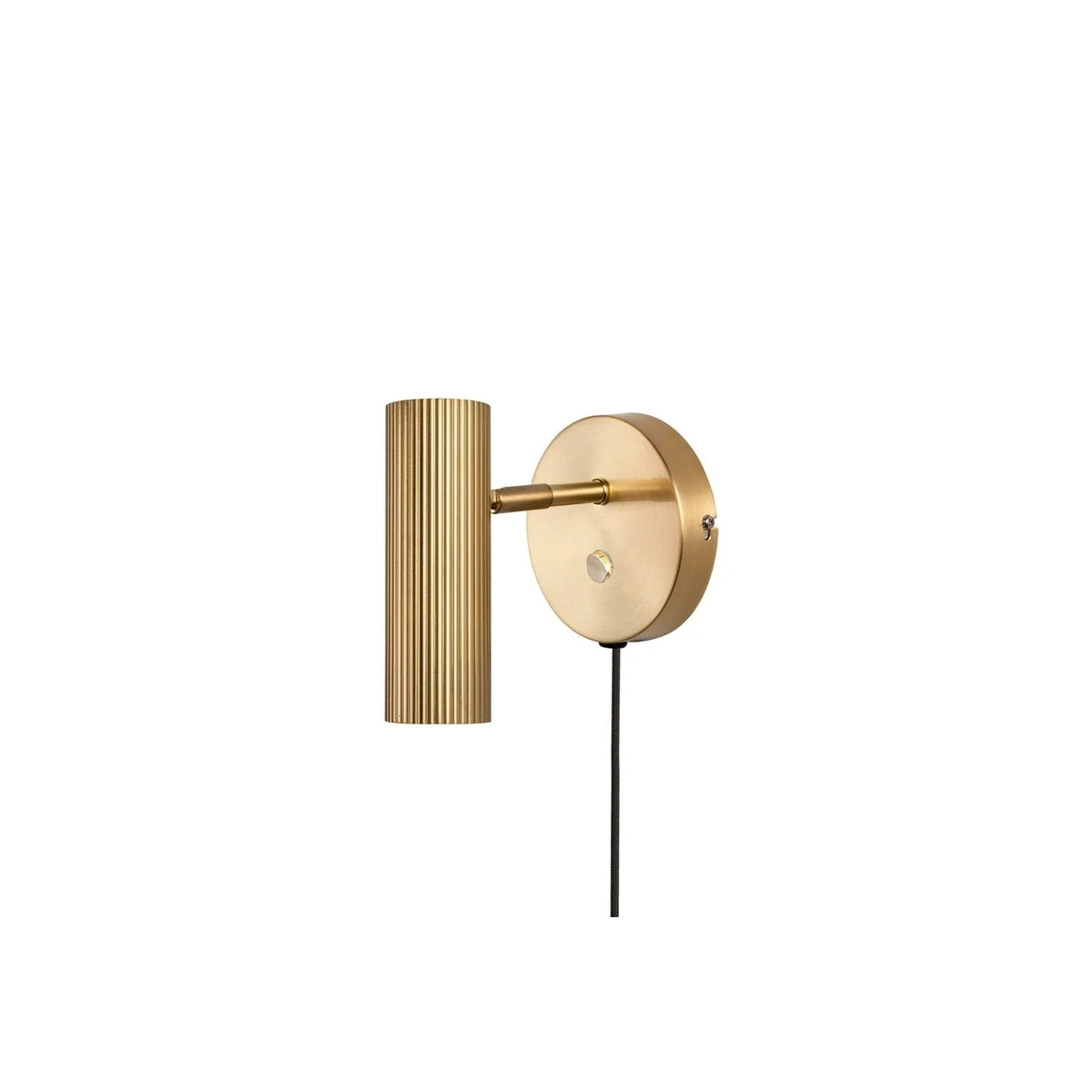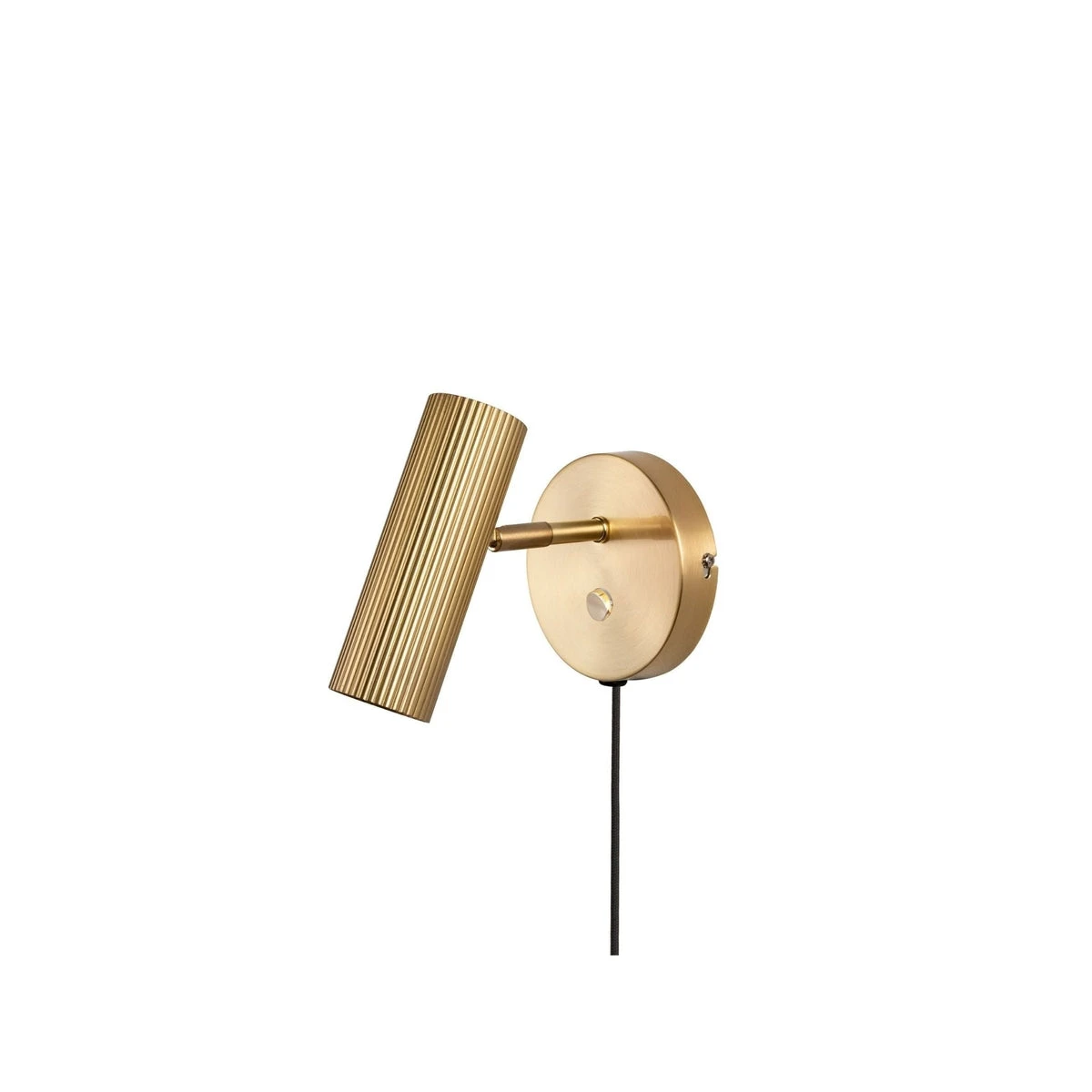 Lampen er laget i messing farget metall og har en 200 cm lang sort tekstilkabel og bryter (av/på, ingen dimmer) på veggplaten.