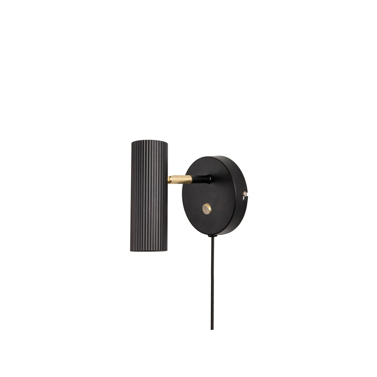 Hubble er en moderne vegglampe med en rørformet enkel ribbet skjerm i metall. Skjermen kan vinkles vertikalt og sideveis.