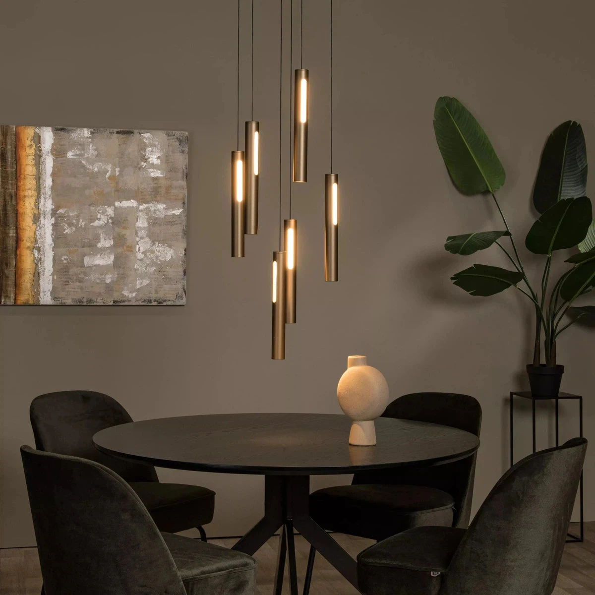 Folk som elsker eleganse og stil vil garantert falle for Griffiths sjarm. Denne slankt designede pendellampen laget av høykvalitets aluminium har ikke bare et iøynefallende design, dens allsidighet og brukervennlighet er ytterligere to store fordeler. Pendellampen består av 6 pendler, og lysfargen kan justeres i takplaten øverst. I tillegg er alle anhengene justerbare i høyden for montering. Dette lar deg gi Griffith akkurat det utseendet du foretrekker. Stilig, brukervennlig og effektiv