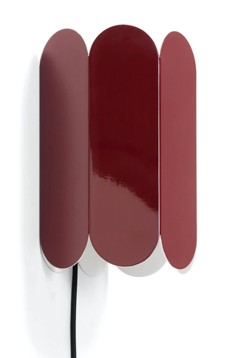 Arcs vegglamper er en del av en serie lamper med buet design skapt for HAY av de belgiske duoen Muller Van Severen. Lampen er formet fra en kontinuerlig kjede med buede buer som skaper en elegant, skulptert silhuett. Det gir lampen et mykt, omgivende lys opp og ned som leker med former og skygger. Lampen er enkel å montere og er tilgjelgelig i to veggvarianter, med og uten ledning/bryter. Lampen er laget i solid stål og er tilgjengelig i flere forskjellige farger eller med speiloverflate. Lampen er allsidig og fin å bruke i korridorer og store rom, samt som nattlampe eller i små hjørner.