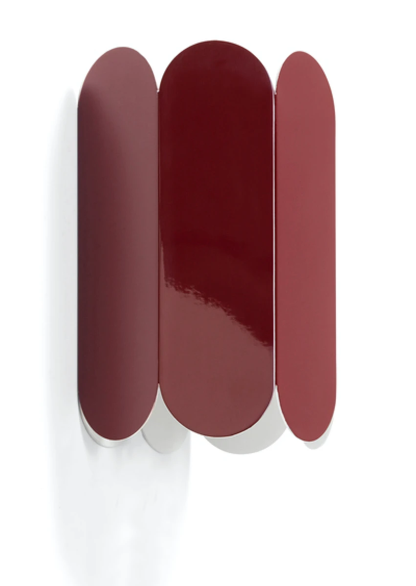 Arcs vegglamper er en del av en serie lamper med buet design skapt for HAY av de belgiske duoen Muller Van Severen. Lampen er formet fra en kontinuerlig kjede med buede buer som skaper en elegant, skulptert silhuett. Det gir lampen et mykt, omgivende lys opp og ned som leker med former og skygger. Lampen er enkel å montere og er tilgjelgelig i to veggvarianter, med og uten ledning/bryter. Lampen er laget i solid stål og er tilgjengelig i flere forskjellige farger eller med speiloverflate. Lampen er allsidig og fin å bruke i korridorer og store rom, samt som nattlampe eller i små hjørner.