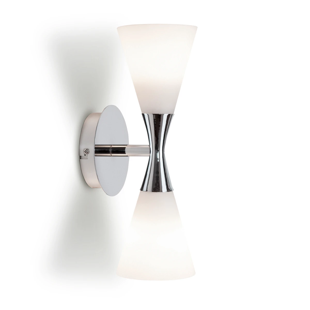 Dekorativ vegglampe fra Hersdal med dobbelt lys og nydelige kromdetaljer.