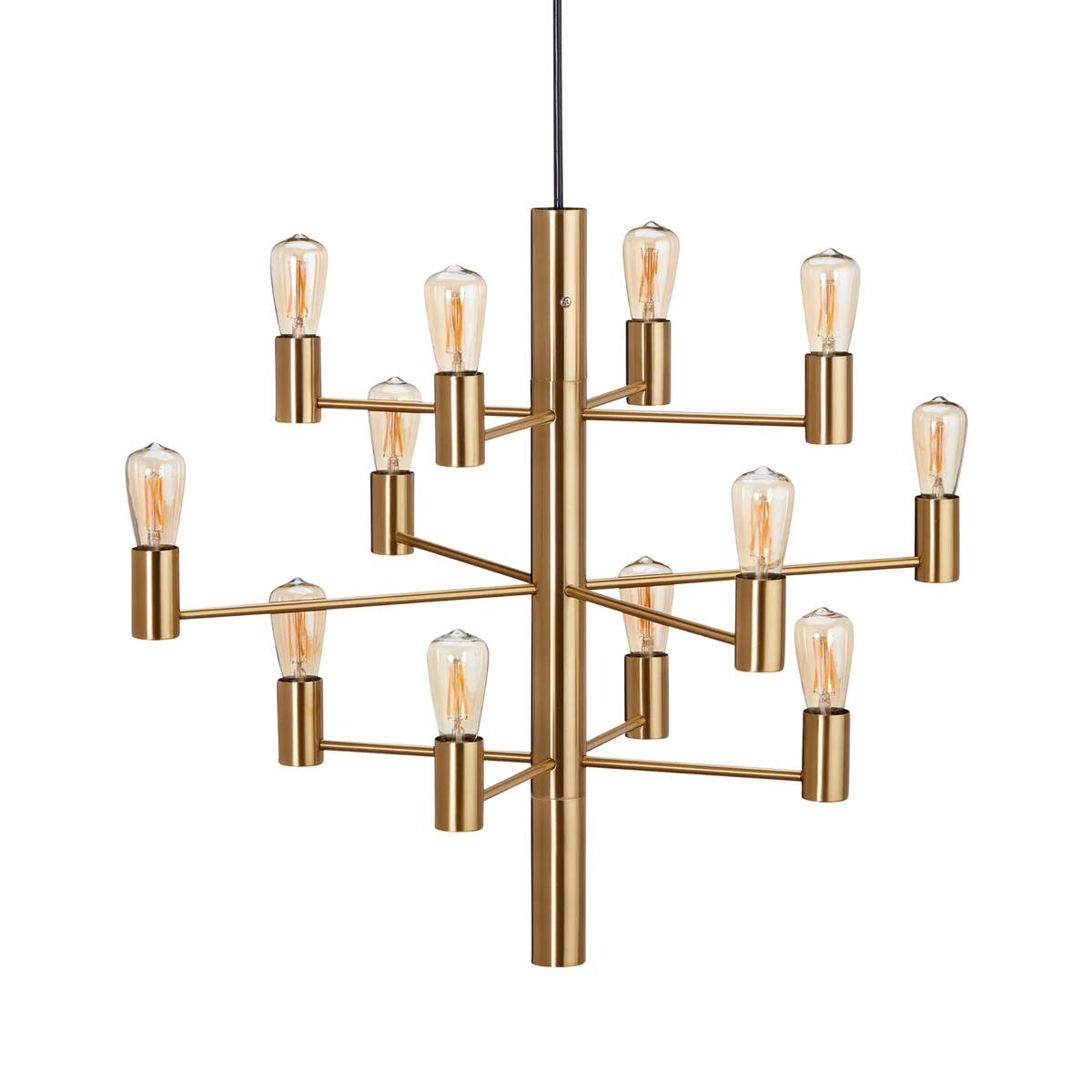 Manola er en eksepsjonell lysekrone med 12 armer i satin messing. Leveres med dimbare LED pærer.