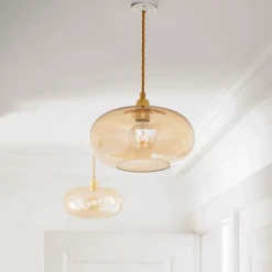 Pendelen leveres med et oppheng i en lekker gullfarge, samt tekstilkabel som er 2 meter lang.