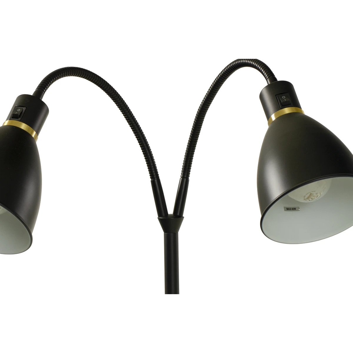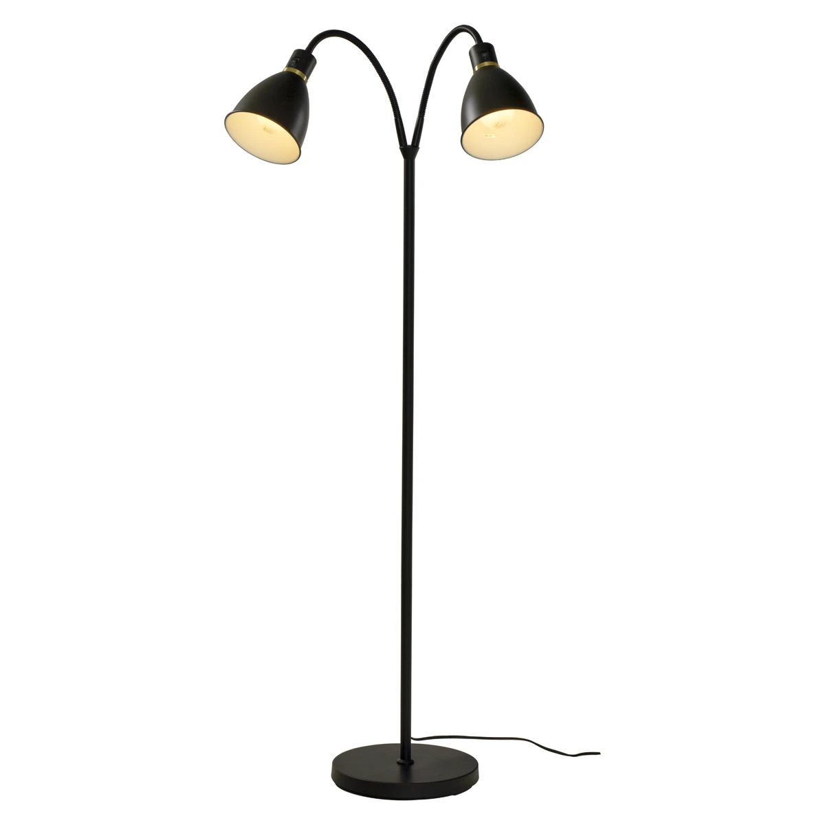 Gulvlampen Idre med doble lampehoder har klassisk design i svartlakkert metall og dekorative ringer i matt messing. Hvert lampehode har en bryter slik at du kan velge om du vil tenne en eller begge lampene. Takket være fleksible armer kan du enkelt rette lyset dit du vil. Idre gulvlampe kan også kombineres med andre lamper i Idre-familien.