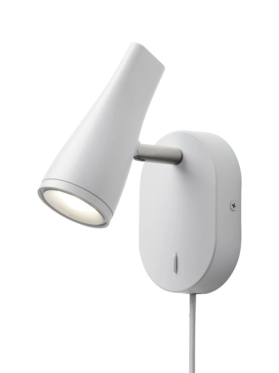 Kile-vegglampe er klar for montering på vegg i soverommet eller i stuen. Selve lampehodet kan justeres. Lampen har integrert LED.