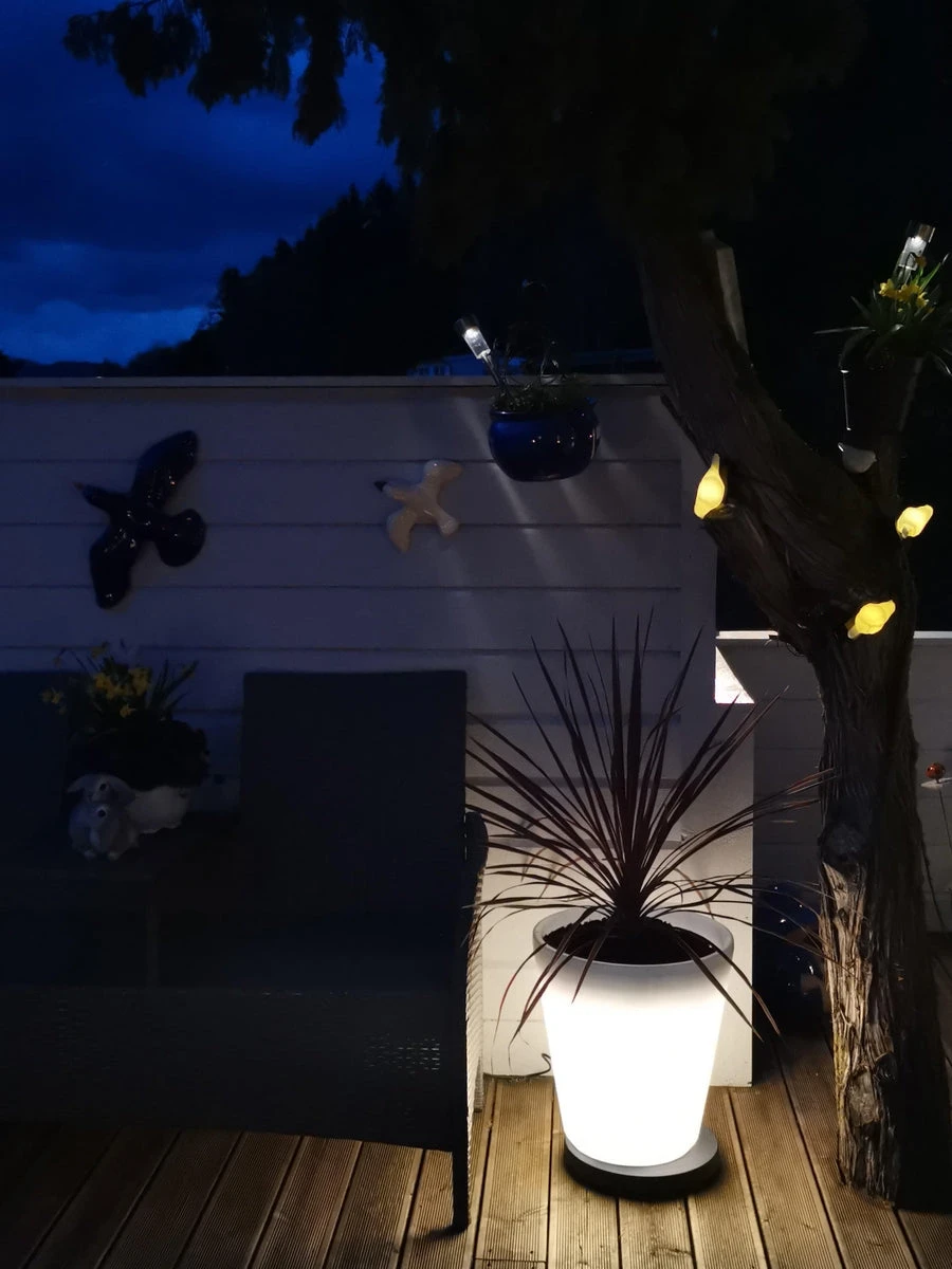 Assisi blomsterpotte finnes i 2 størrelser og er laget av plast i høy kvalitet som er belyst innvendig med LED-lys.