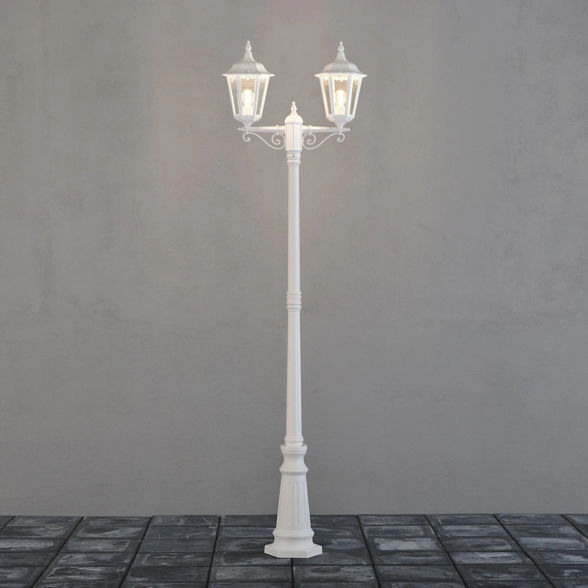 Firenze 2-arm stolpe hvit 2 lykter. Klassisk lyktestolpe.