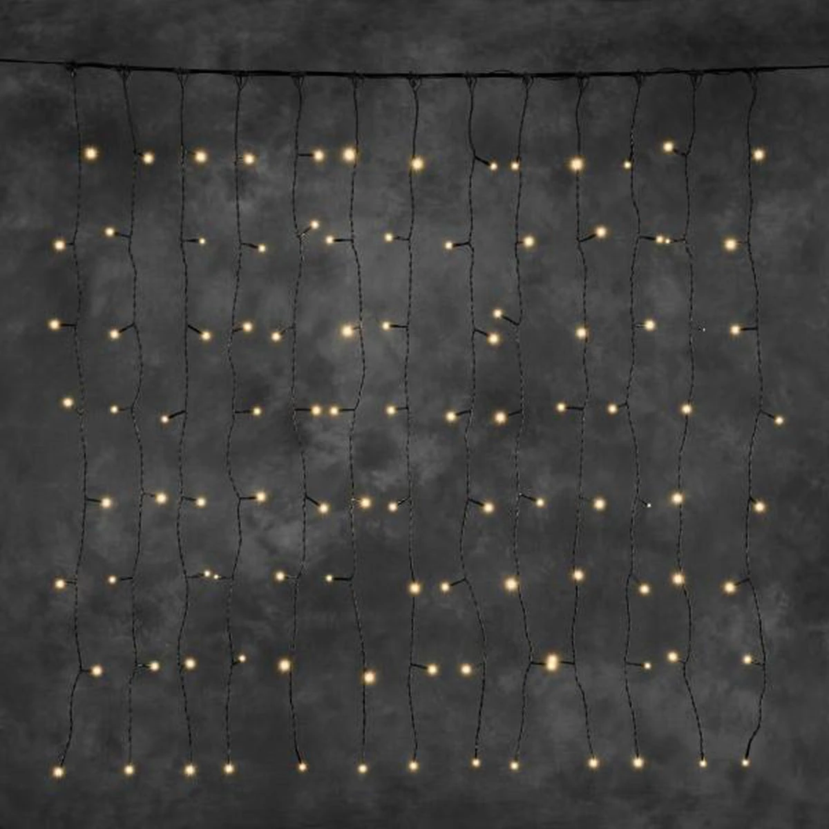 Gardinslynge med 104 LED-lyskilder og sort kabel.