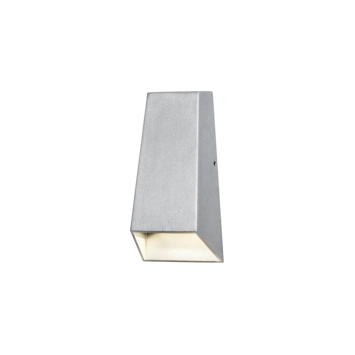 Liten, effektfull vegglampe med opp og ned lys. Bredere vinkel på lysstrålen som går ned, enn den som går opp. Lampen er i aluminium og utstyrt med 2 x 3W LED.