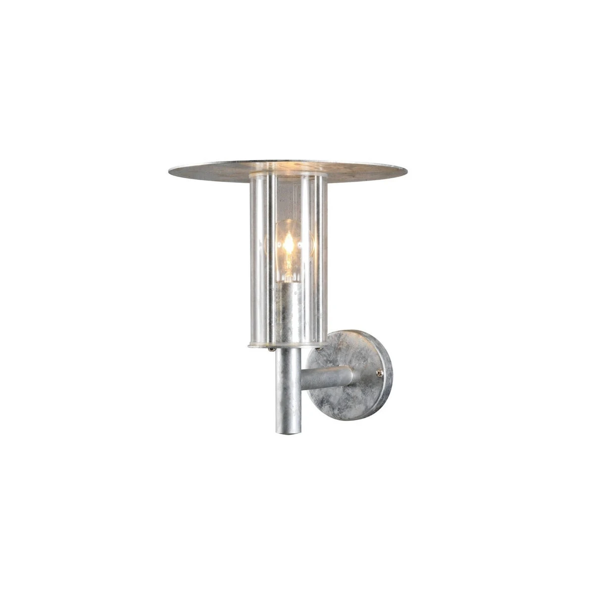 Mode vegglampe er vendt opp, i stilig galvanisert stål og klart glass.