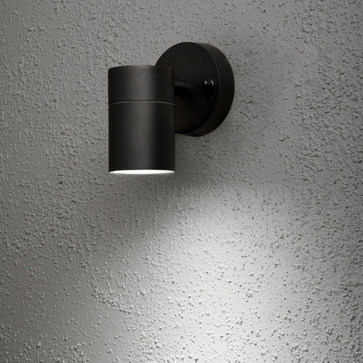 Svart moderne vegglampe med lys som vender ned. En del av en lampe-serie.
