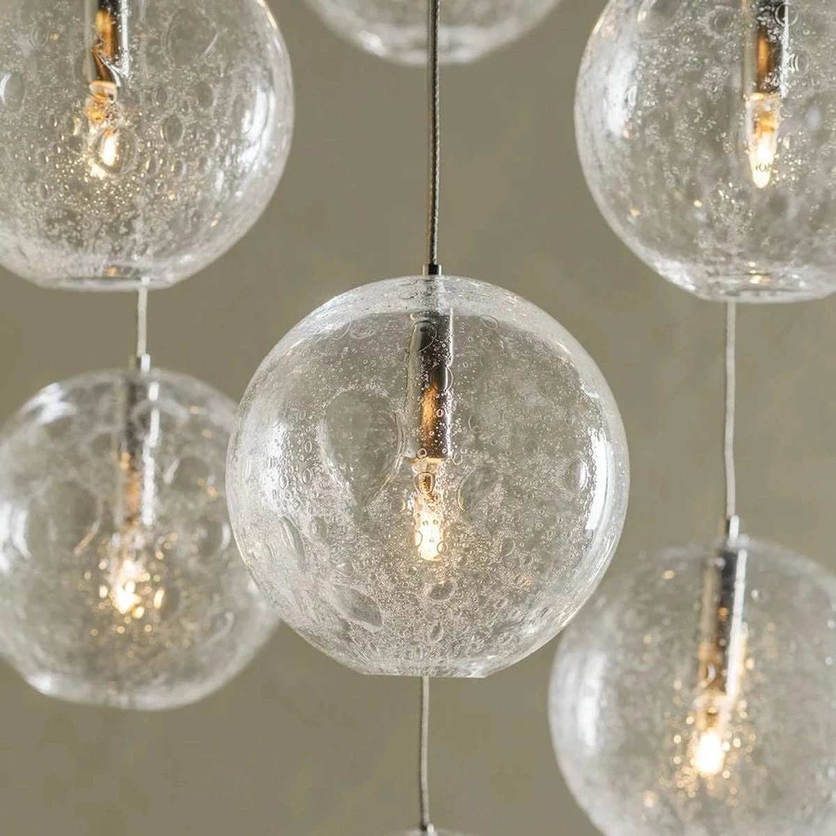 Krystallballene munnblåses og håndpoleres på Hadeland Glassverk. Kulene fås i 120mm, mønsteret Soda, kuppelfarge klar og opphengsfarge sølv. Fås kjøpt med minimum 7 kuler.