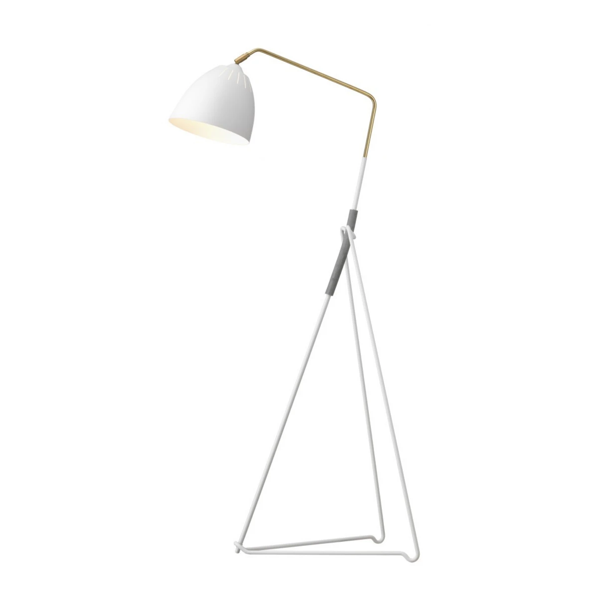 Lean er tilgjengelig i matt svart og hvit teksturfarge. Gulvlampens skrå arm strekker seg praktisk over en sofa eller lenestol, og den justerbare skjermen gir et komfortabelt leselys.