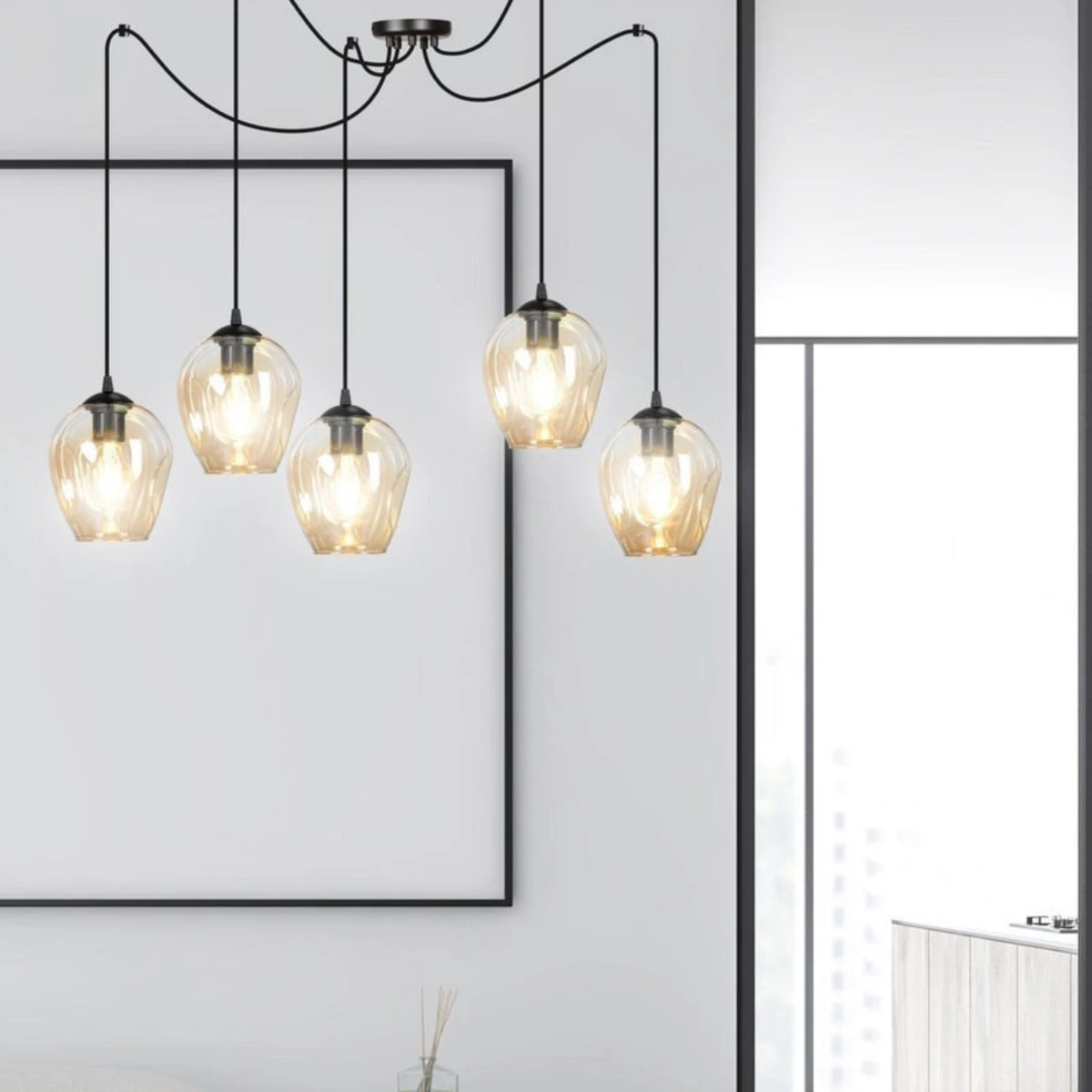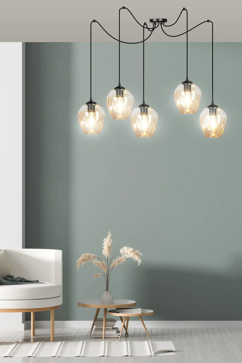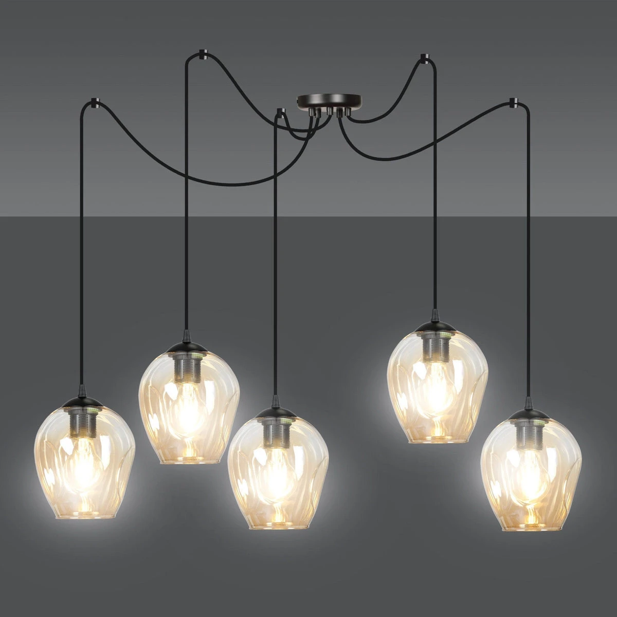 Level er en nydelig pendelserie, som blant annet finnes som 1, 3 eller 5 lys. Modellen er i fargen sort og kan velge mellom klart-, røykfarget- eller amberfarget glass.