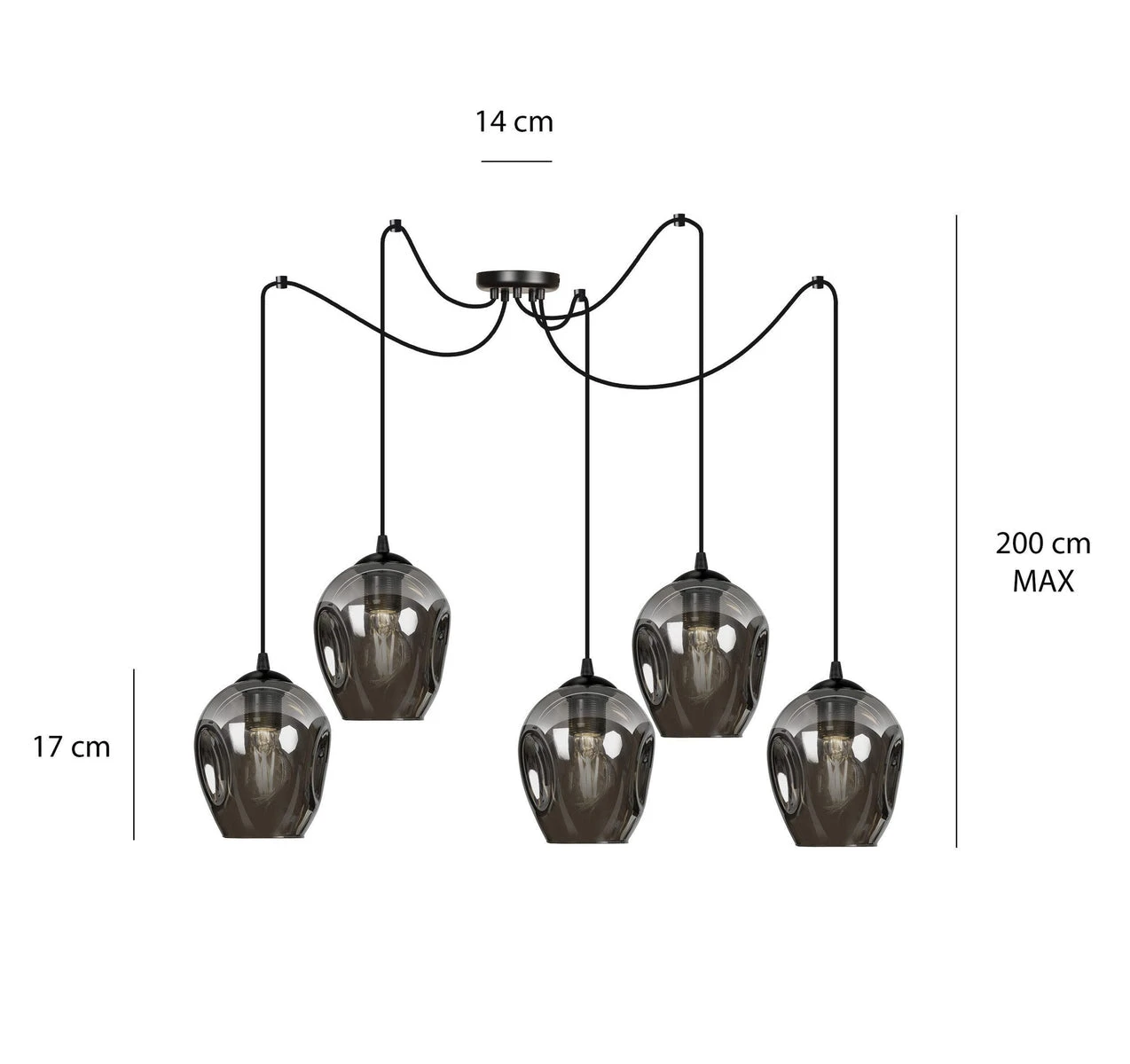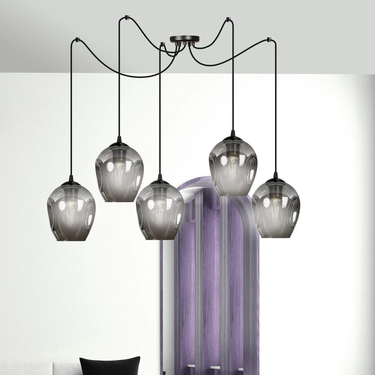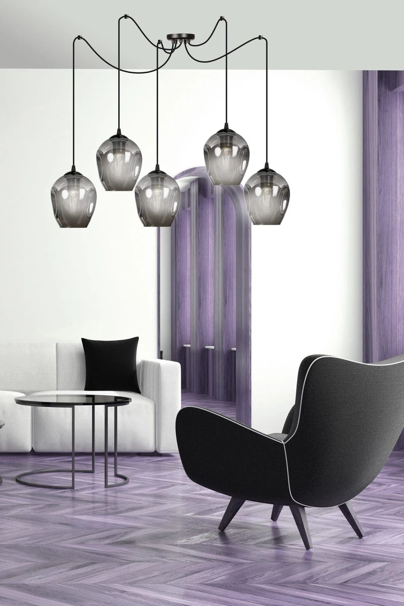 Level er en nydelig pendelserie, som blant annet finnes som 1, 3 eller 5 lys. Modellen er i fargen sort og kan velge mellom klart-, røykfarget- eller amberfarget glass.