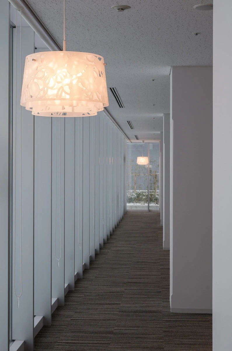 Taklampen Collage sender ut et varmt og primært nedadrettet lys. Mønsteret på de tre laserskårede akrylskjermene har blitt forskjøvet med sikte på å eliminere ubehagelig blending fra lyskilden. Mønsteret på skjermene varierer, noe som resulterer i ulike oppfatninger av lys og skygge, avhengig av synsvinkel. Et mykt og behagelig lys oppnås ved å montere den nederste avblendingsskjermen.