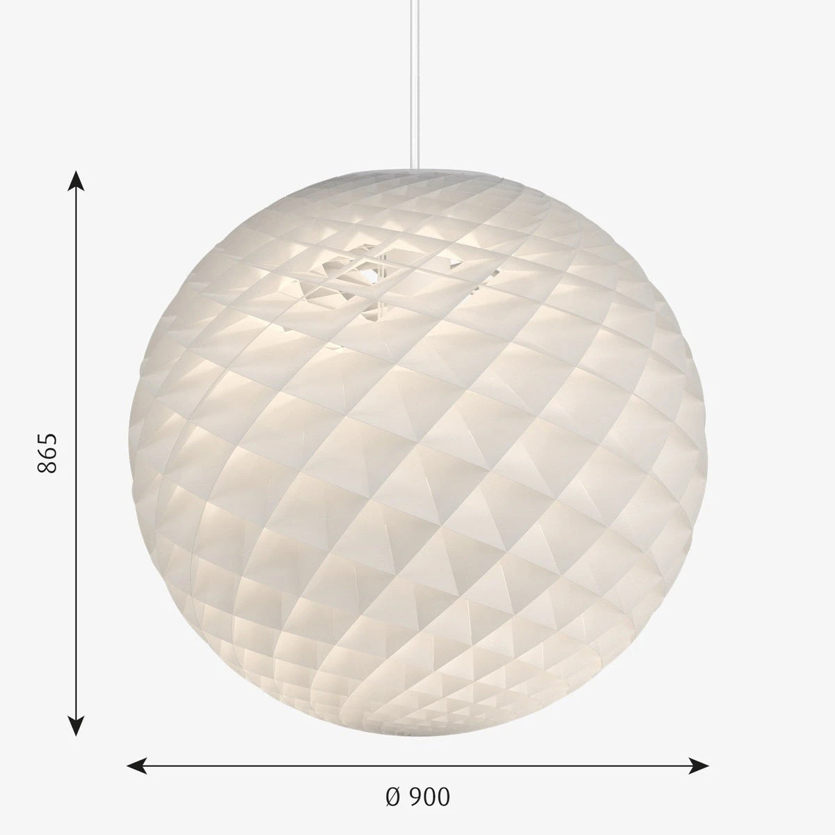 Den sfæriske pendelen avgir en blendefri lysglød som reflekteres av de små diamantformede cellene som armaturen er laget av. Strukturen på lampen sikrer at lyset er blendefritt fra over 45 graders vinkel, samtidig som armaturen avgir et nedadrettet lys og oppadrettet glød som lyset opp taket for å gi omgivelsene en god stemning. Hver celle former lyset ved å skape myke overganger mellom direkte og reflektert lys for å understreke pendelens strålende sfære.