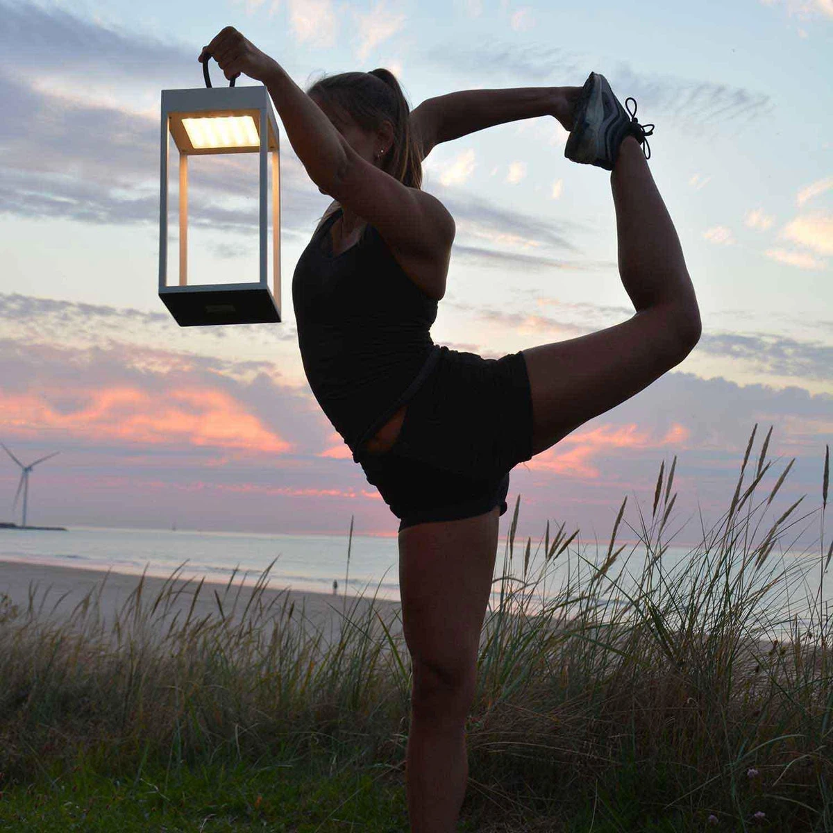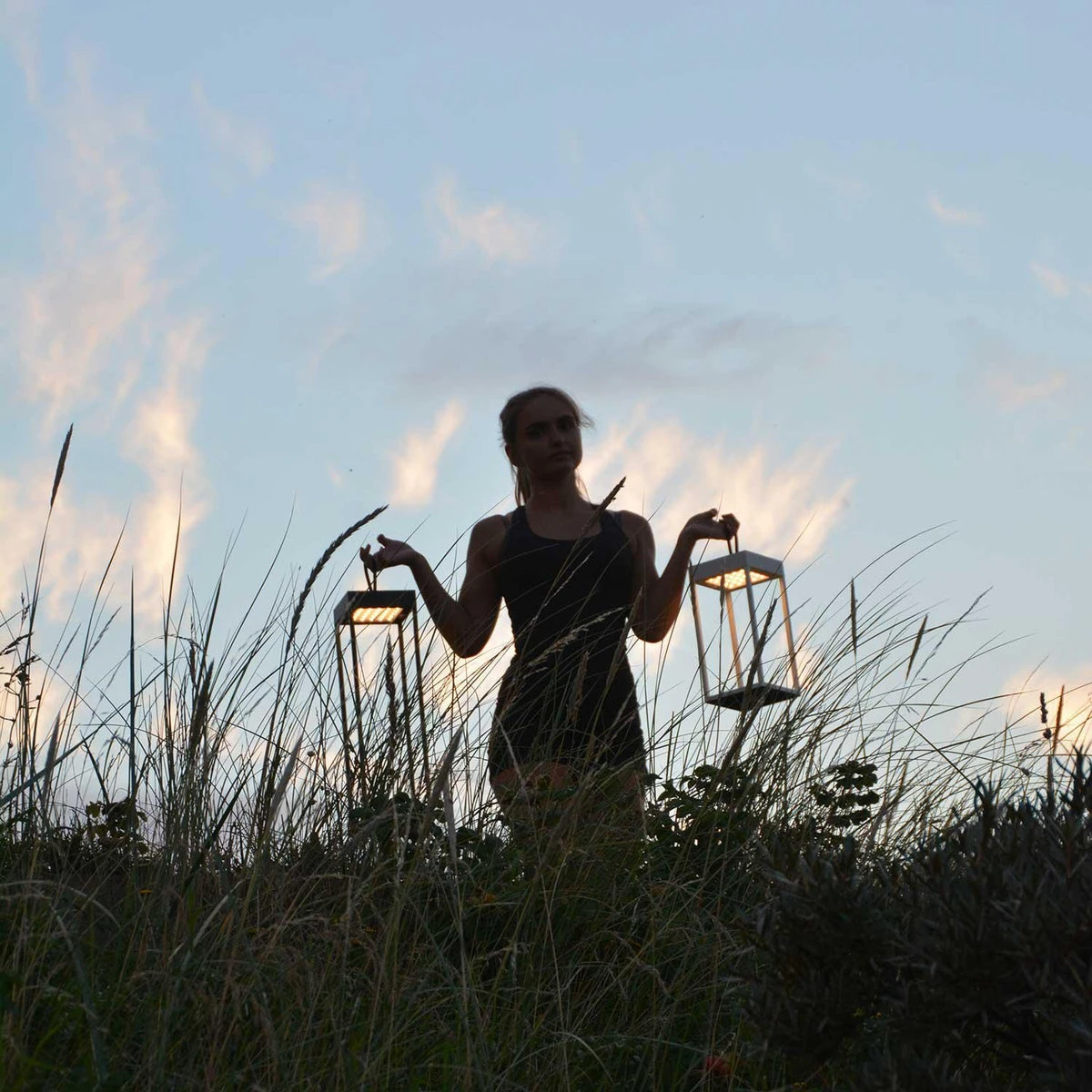 Lanternen har et silikonhåndtak på toppen som gjør det enkelt å flytte den rundt, og den har en berøringsbryter med dimmer og en USB-kontakt på toppen som gjør den enkel å betjene. Lykten kan stå både inne i hjemmet eller ute i hagen, der den kan gi et velkomstlys, og siden den er uten synlige skruer og har en IP65-kaplingsgrad, passer den godt med det nordiske været.