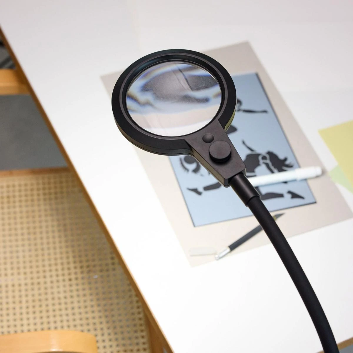 Magni – oppladbar bordlampe med mye lys og funksjonalitet. Lampen har forstørrelses glass 3 ganger forstørring.