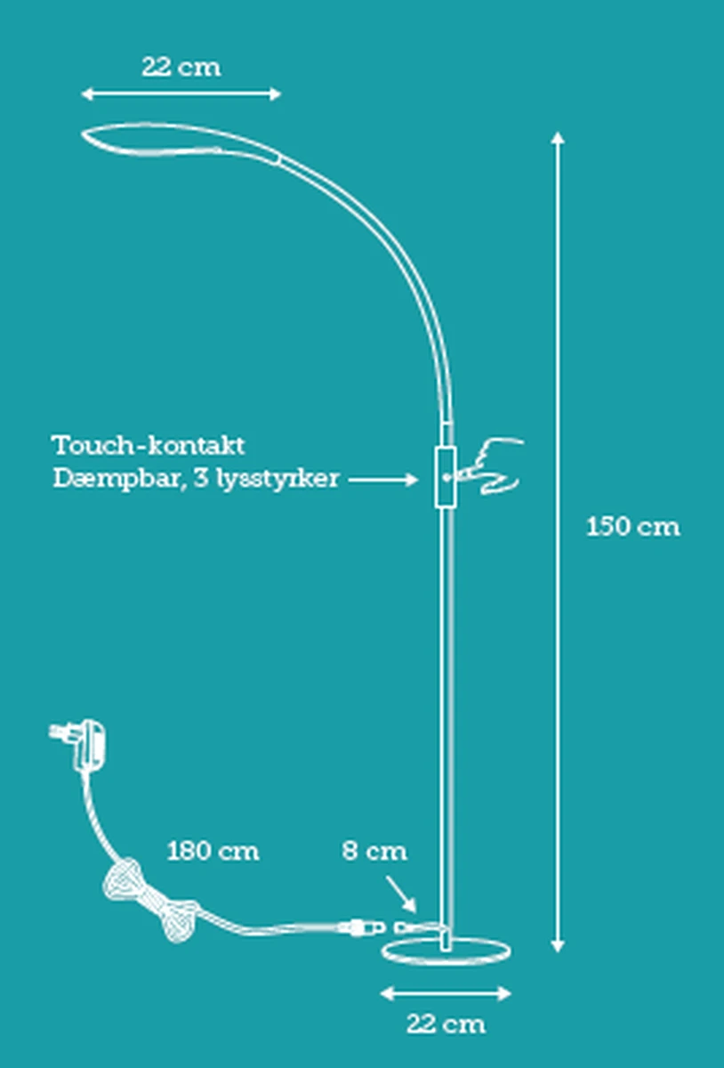 Mamba er en fleksibel gulvlampe som passer perfekt som leselampe. Lampen kan dimmes i 3-steg og finnes i fargene hvit eller svart.