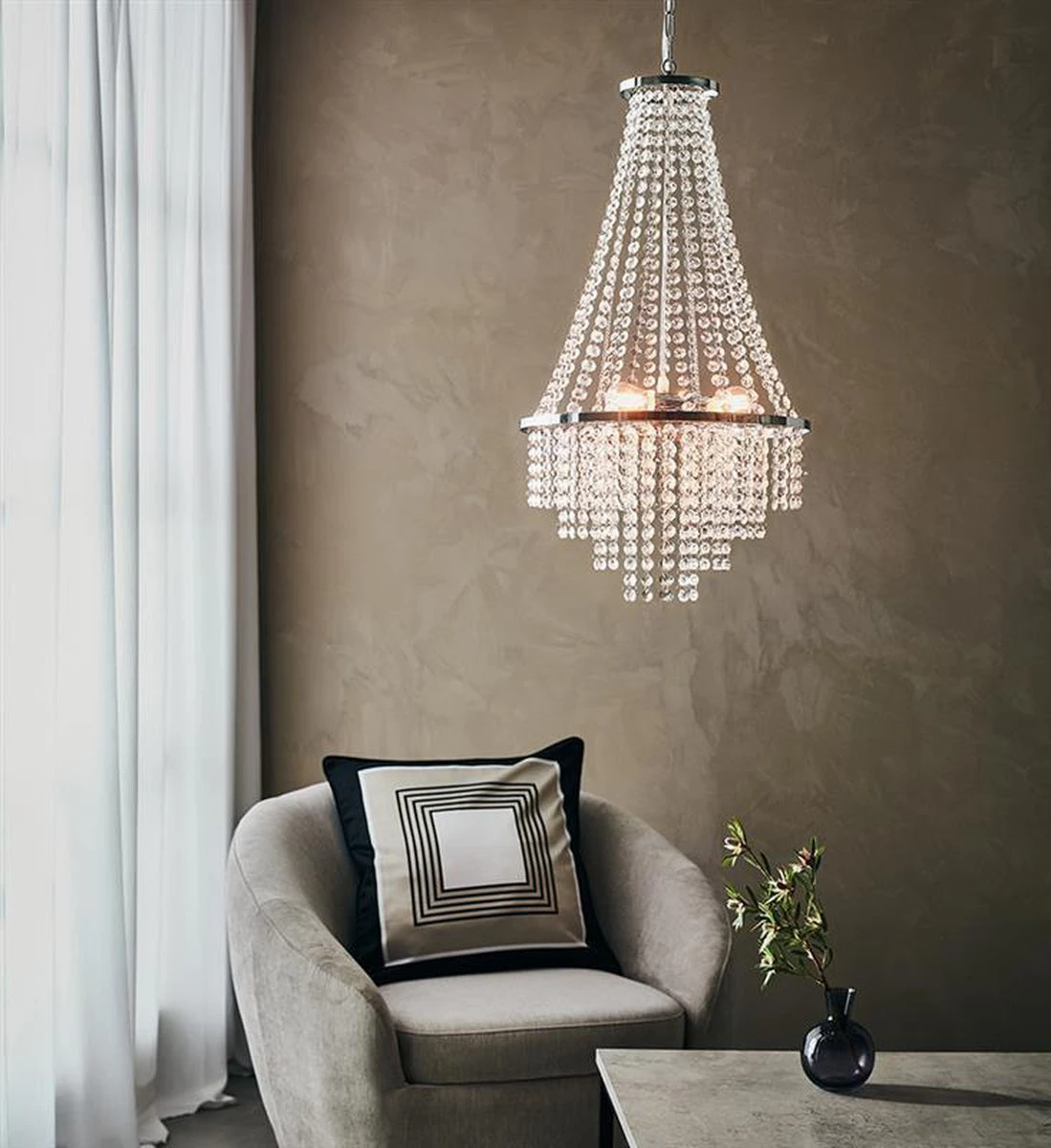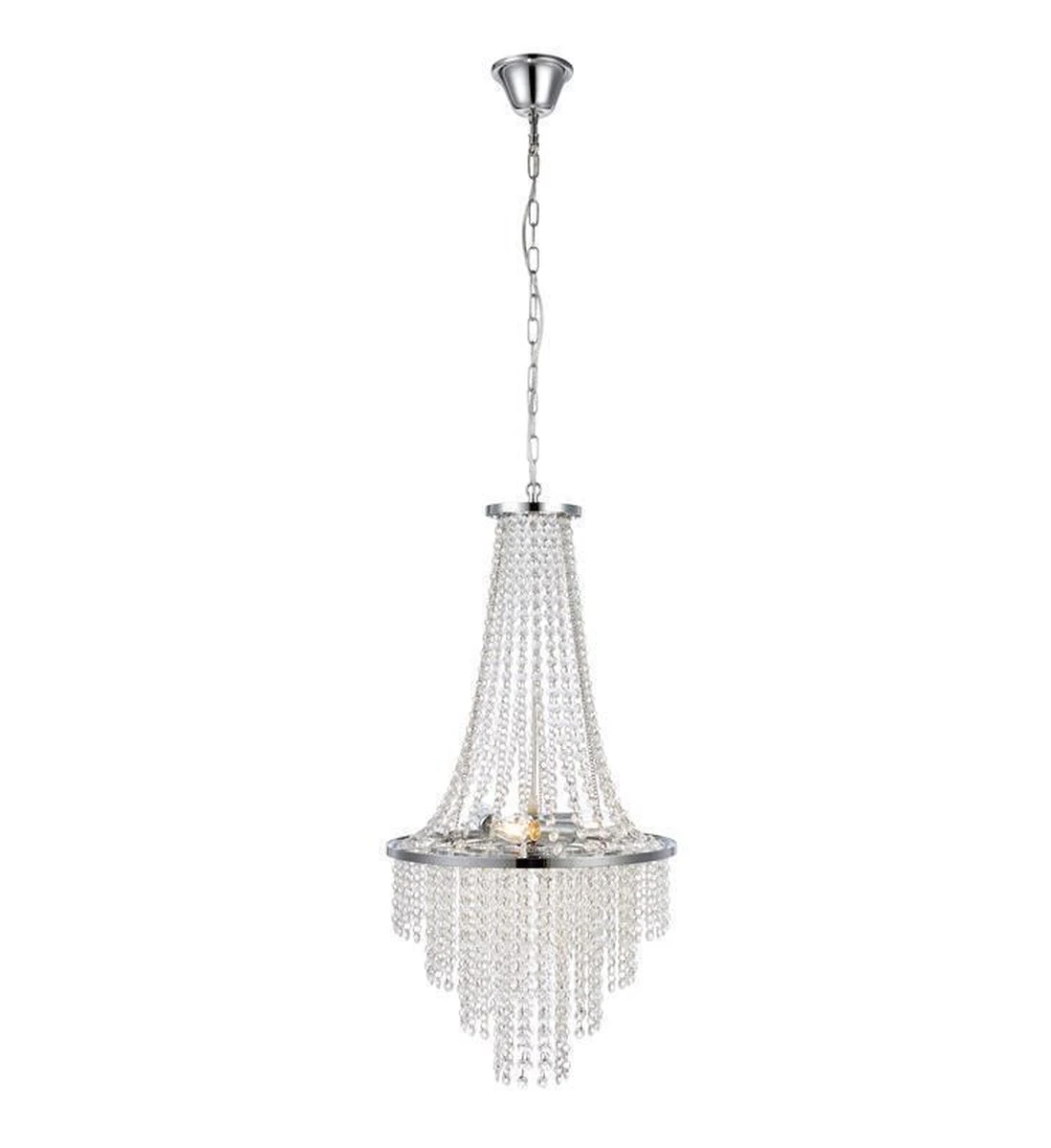 Allington er en nydelig lysekrone i krom med klare prismer.